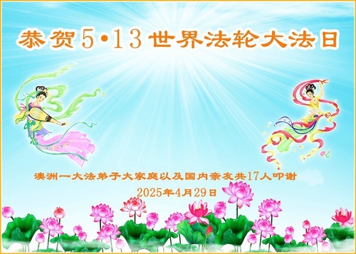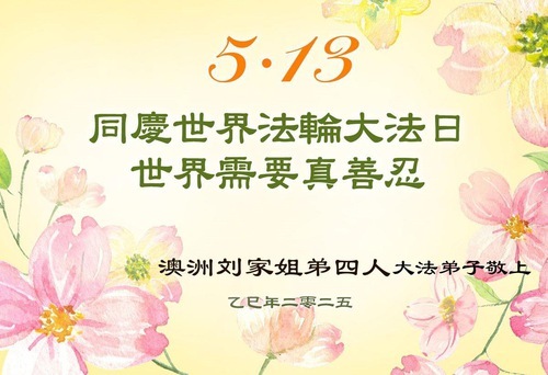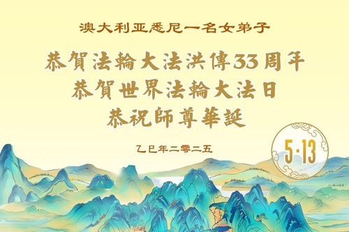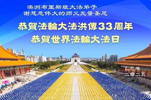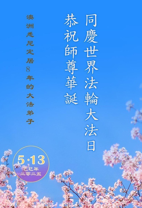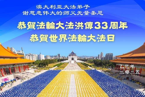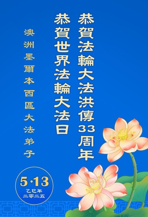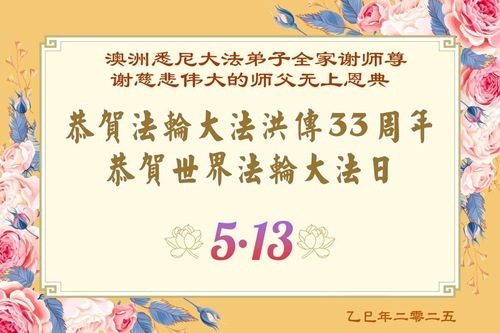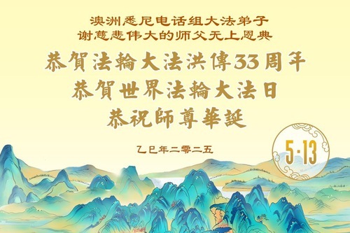 (Minghui.org) Практикующие из Австралии и Новой Зеландии отмечают Всемирный День Фалунь Дафа и 33-ю годовщину публичного представления Фалунь Дафа. Они сердечно поздравляют уважаемого Учителя с Днём рождения и выражают свою благодарность Учителю за милосердное спасение.