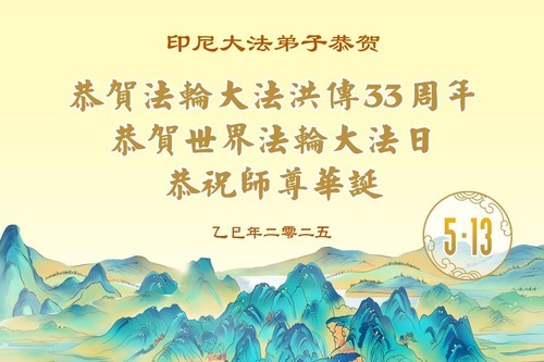 Практикующие Фалунь Дафа из Индонезии и их семьи поздравляют уважаемого Учителя с Днём рождения и празднуют Всемирный День Фалунь Дафа!