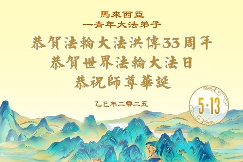 Практикующие Фалунь Дафа из Малайзии поздравляют уважаемого Учителя с Днём рождения и празднуют Всемирный День Фалунь Дафа!
