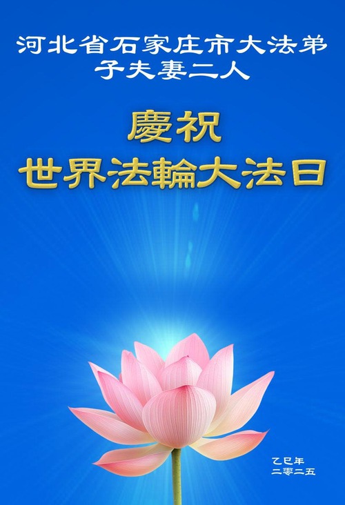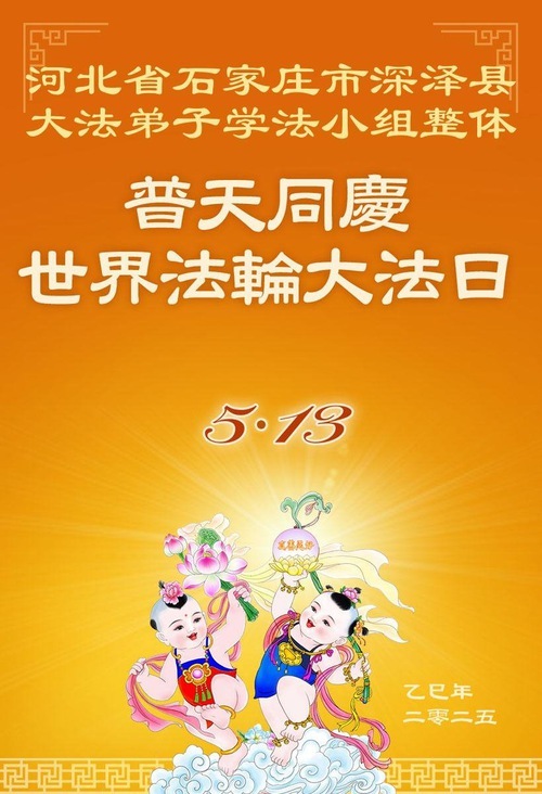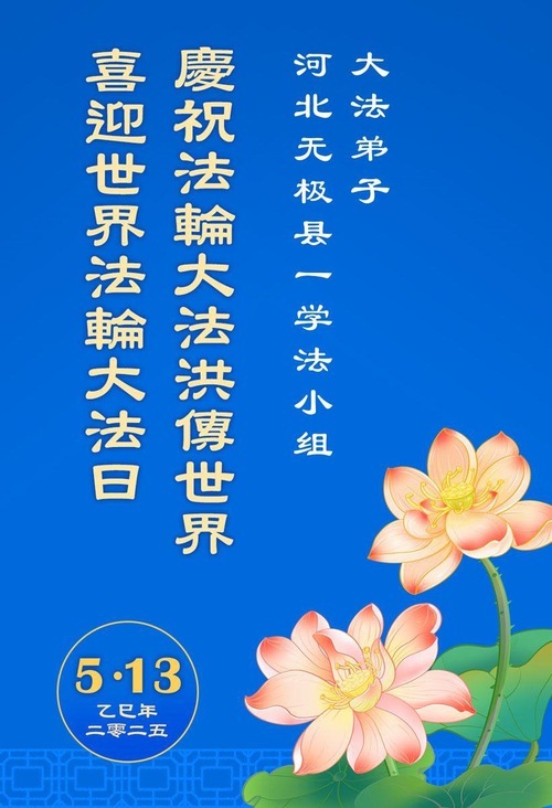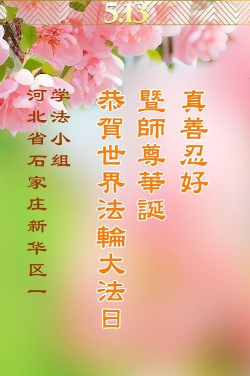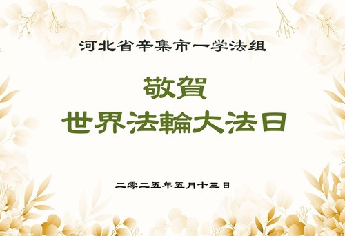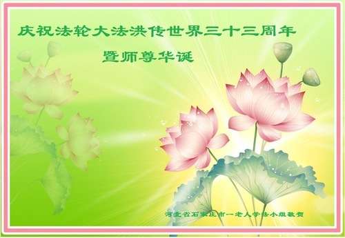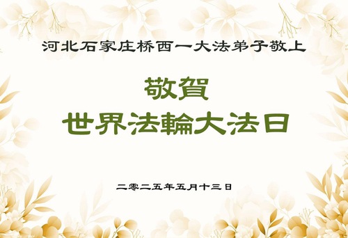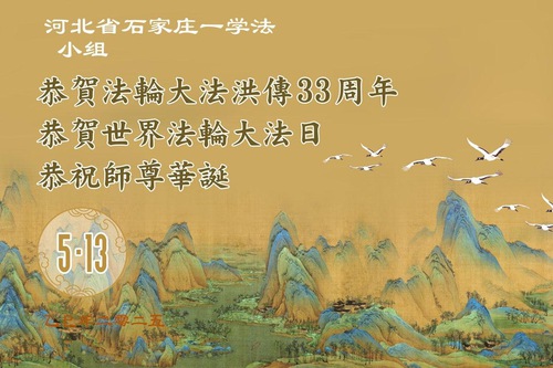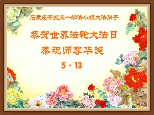 Практикующие Фалунь Дафа из города Шицзячжуан желают уважаемому Учителю счастливого Дня рождения и празднуют Всемирный День Фалунь Дафа!