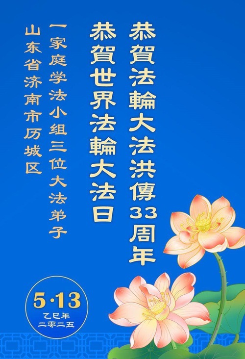 (Minghui.org) 13 мая 2025 года отмечается 26-й Всемирный День Фалунь Дафа и 33-я годовщина публичного представления Фалунь Дафа. Этот день также является Днём рождения Мастера Ли, основателя Фалунь Дафа. Практикующие по всему миру шлют свои сердечные поздравления, чтобы отпраздновать это важное событие и поблагодарить уважаемого Учителя в этот особенный день.