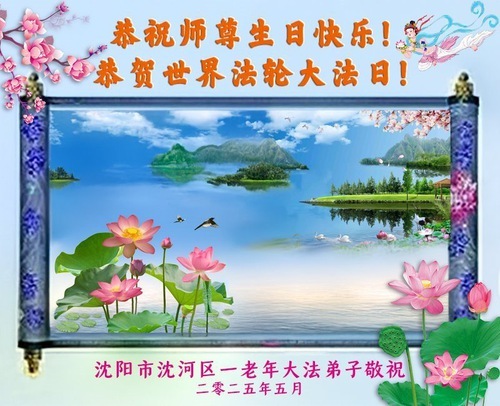 Практикующие Фалунь Дафа из города Шэньян желают уважаемому Учителю счастливого Дня рождения и празднуют Всемирный День Фалунь Дафа!