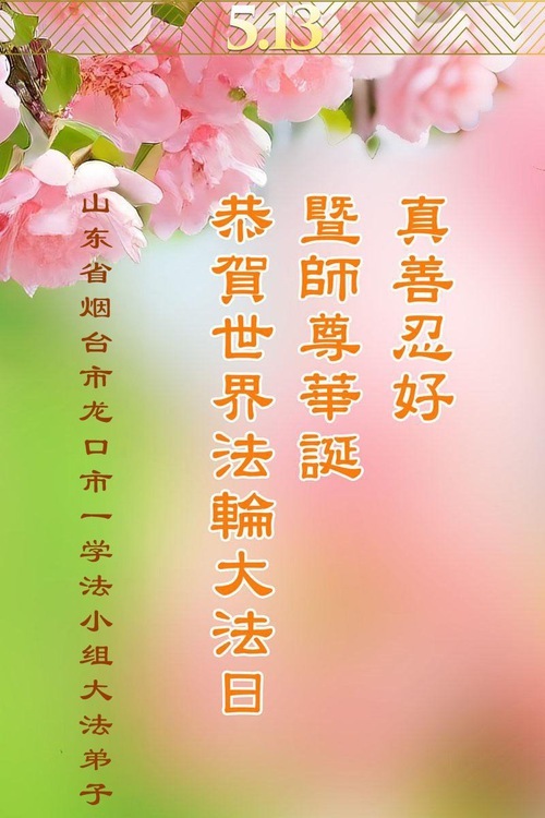 Практикующие Фалунь Дафа из провинции Шаньдун желают уважаемому Учителю счастливого Дня рождения и торжественно отмечают Всемирный День Фалунь Дафа!