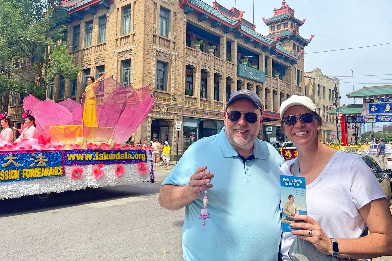 Джим, специалист в сфере медиа из Миннесоты, который занимается Фалунь Дафа уже 21 год, приехал в Чикаго, чтобы принять участие в параде. Он сказал, что хотел бы поделиться важным сообщением с китайской общиной: «Я хочу сказать всем китайцам: пожалуйста, найдите минуту, успокойтесь и с открытым сердцем послушайте, о чём говорят практикующие Фалуньгун. Не верьте слепо пропаганде КПК – научитесь отличать добро от зла».