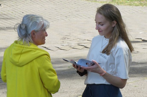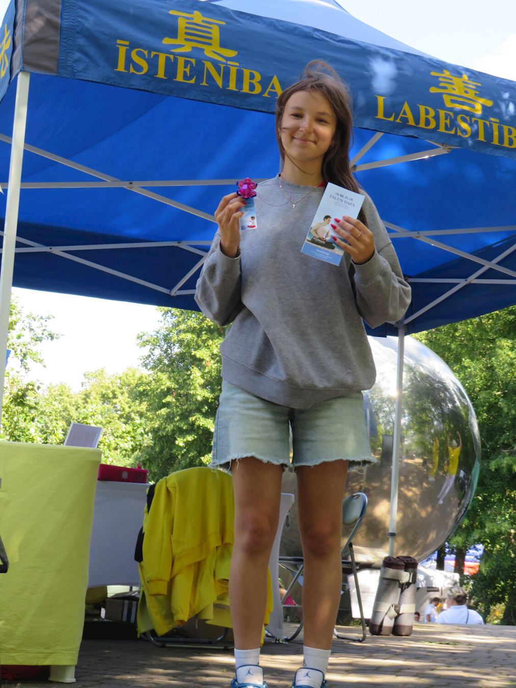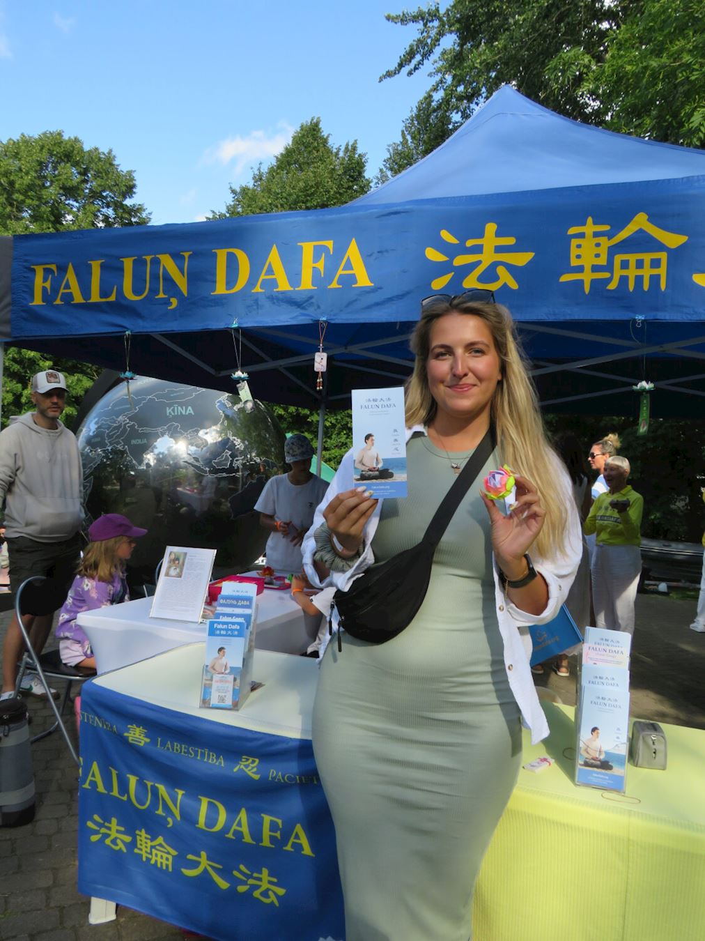 Она взяла информационный буклет и детскую книгу о ценностях Фалунь Дафа, чтобы прочитать её детям, когда вернётся в Ирландию. Габи сказала, что также порекомендует Фалунь Дафа своей бабушке, живущей в Латвии. Перед уходом она поблагодарила практикующих и сказала, что этот день был для неё очень ценным.