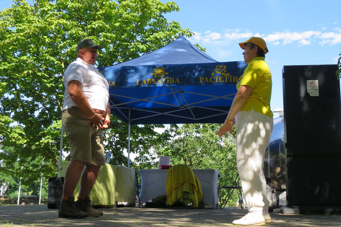 Мужчина по имени Айнарс, представлявший на фестивале государственную службу охраны окружающей среды, наблюдал за деятельностью практикующих из своей палатки. Он подошёл к ним и сказал, что хотел бы узнать более подробно о Фалунь Дафа. Когда ему сказали, что практика включает в себя упражнения, он ответил, что долго искал что-то подобное и что врачи рекомендовали ему заниматься медитацией.