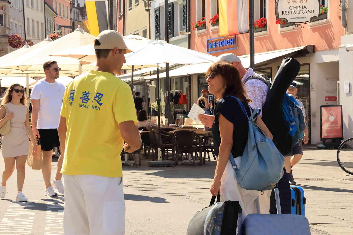 Практикующие из Германии и Швейцарии в течение пятнадцати суббот, с февраля по июль 2025 года, устанавливали стенды в паромном терминале в Констанце и на площади Марктштетт в центре города, чтобы рассказать людям о Фалунь Дафа (Фалуньгун). Узнав о жестоком преследовании практики компартией Китая, продолжающемся на протяжении 26 лет и об извлечении органов у живых практикующих Фалуньгун, многие поставили свои подписи под петицией, призывающей положить конец преступлениям компартии Китая против человечности.
