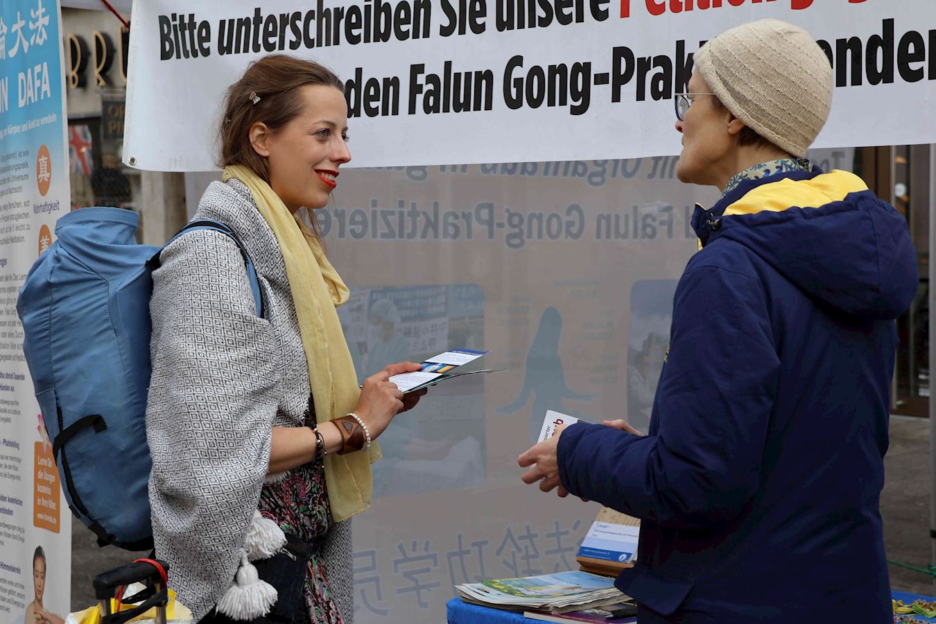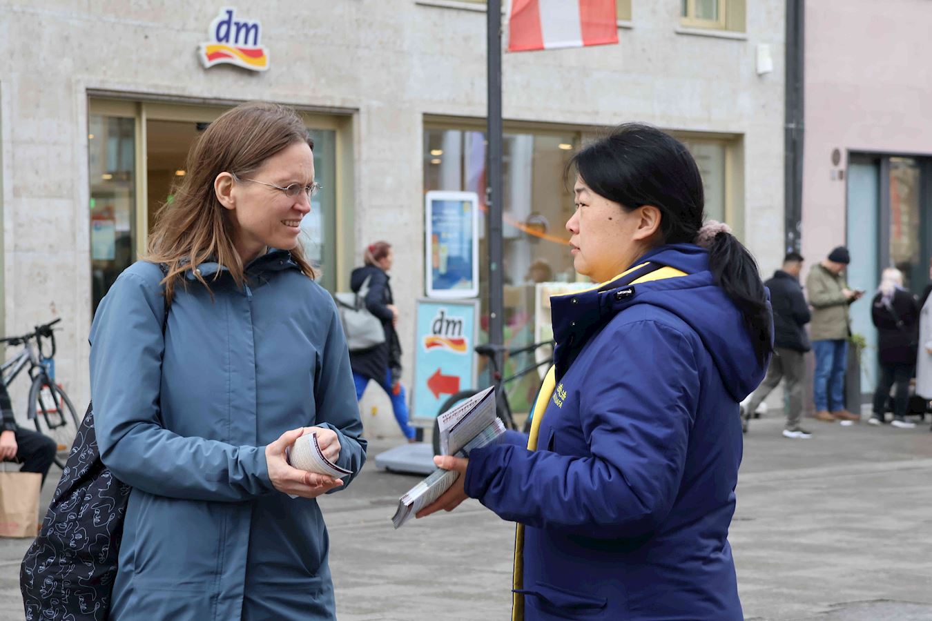 Многие прохожие, услышав, что Фалунь Дафа учит людей следовать принципам «Истина, Доброта, Терпение», чтобы быть хорошими людьми, недоумевали: «Почему компартия Китая преследует такую мирную и замечательную практику? И почему это продолжается уже 26 лет?».
