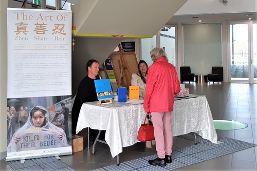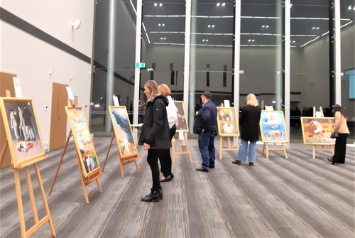 (Minghui.org) В течение двух недель, с 11 по 25 июля 2025 года, в общественном центре Гари Холанда в Рокингеме проходила художественная выставка «Искусство Чжэнь Шань Жэнь (Истина, Доброта, Терпение)».