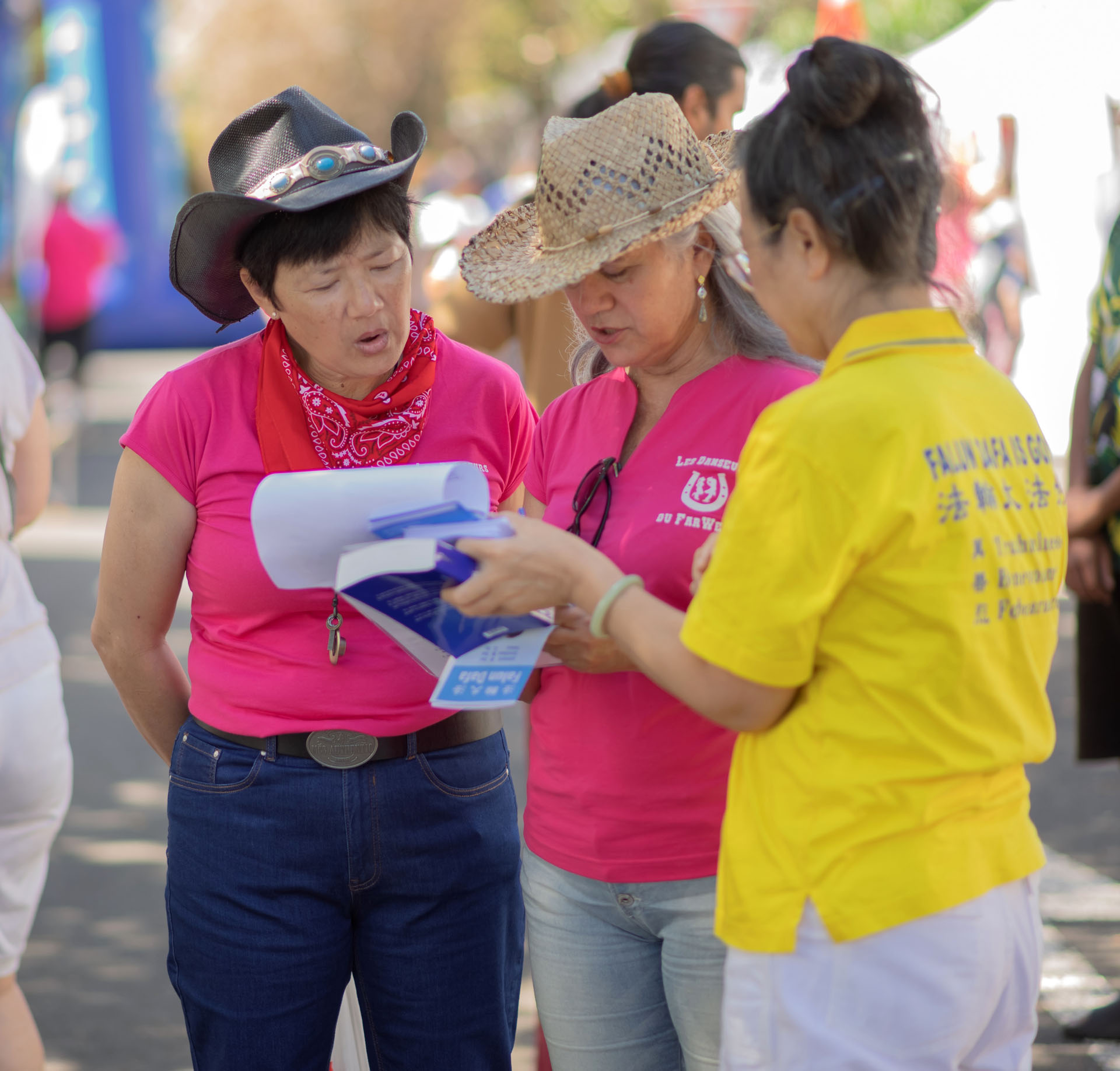 Президент и два члена мусульманской ассоциации из соседнего города Ле-Пор были потрясены, узнав о преследовании в Китае. Они слышали только о преступлениях коммунистических властей против уйгуров, но не знали о преследовании практикующих Фалунь Дафа. Они удивились, почему крупные СМИ не освещают эту серьёзную проблему.