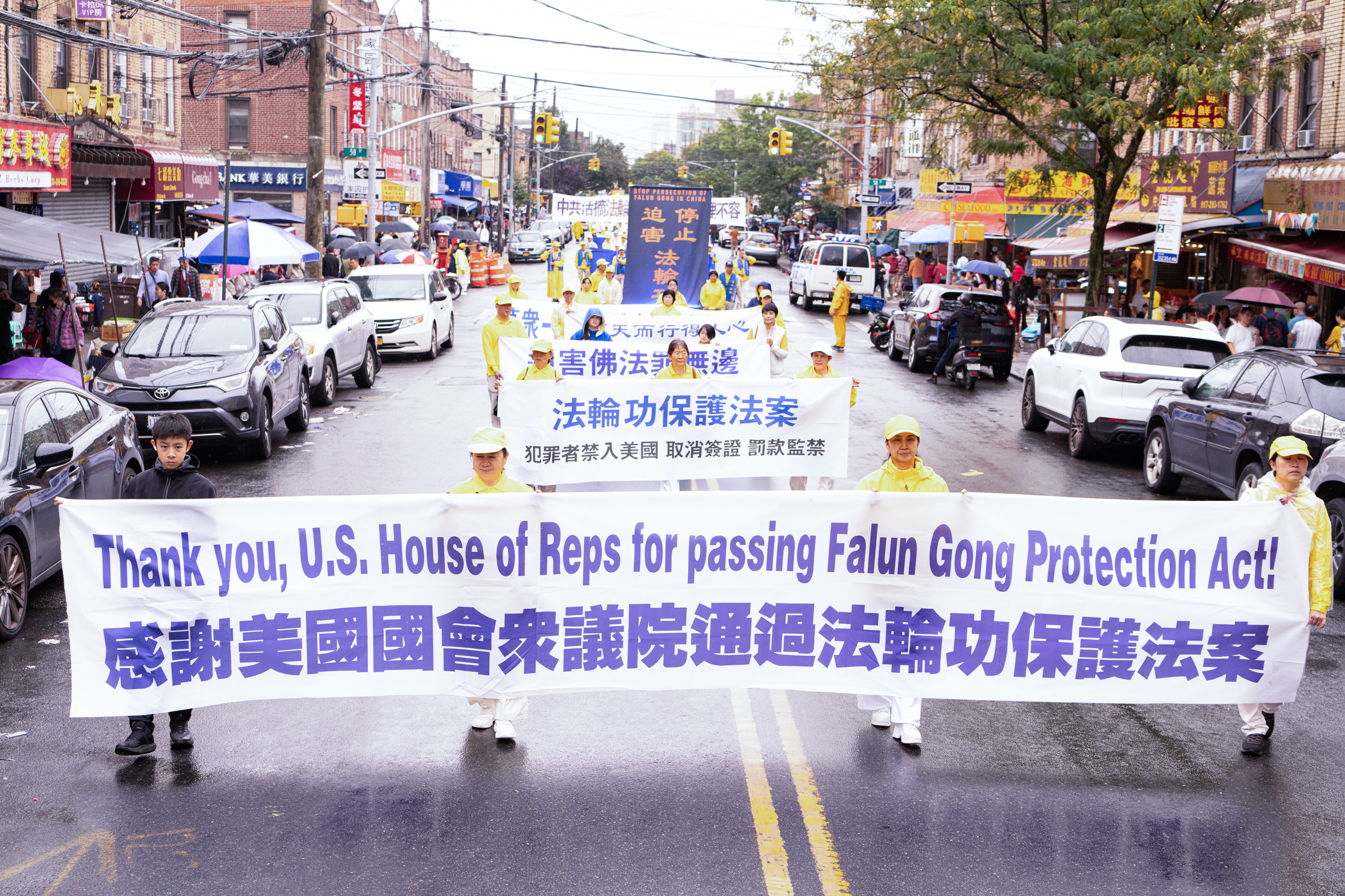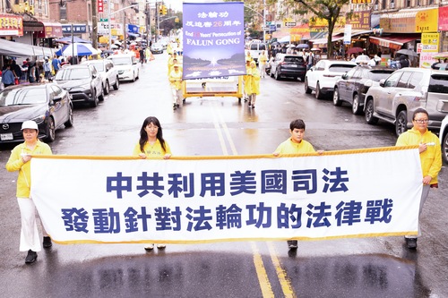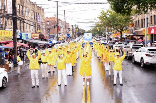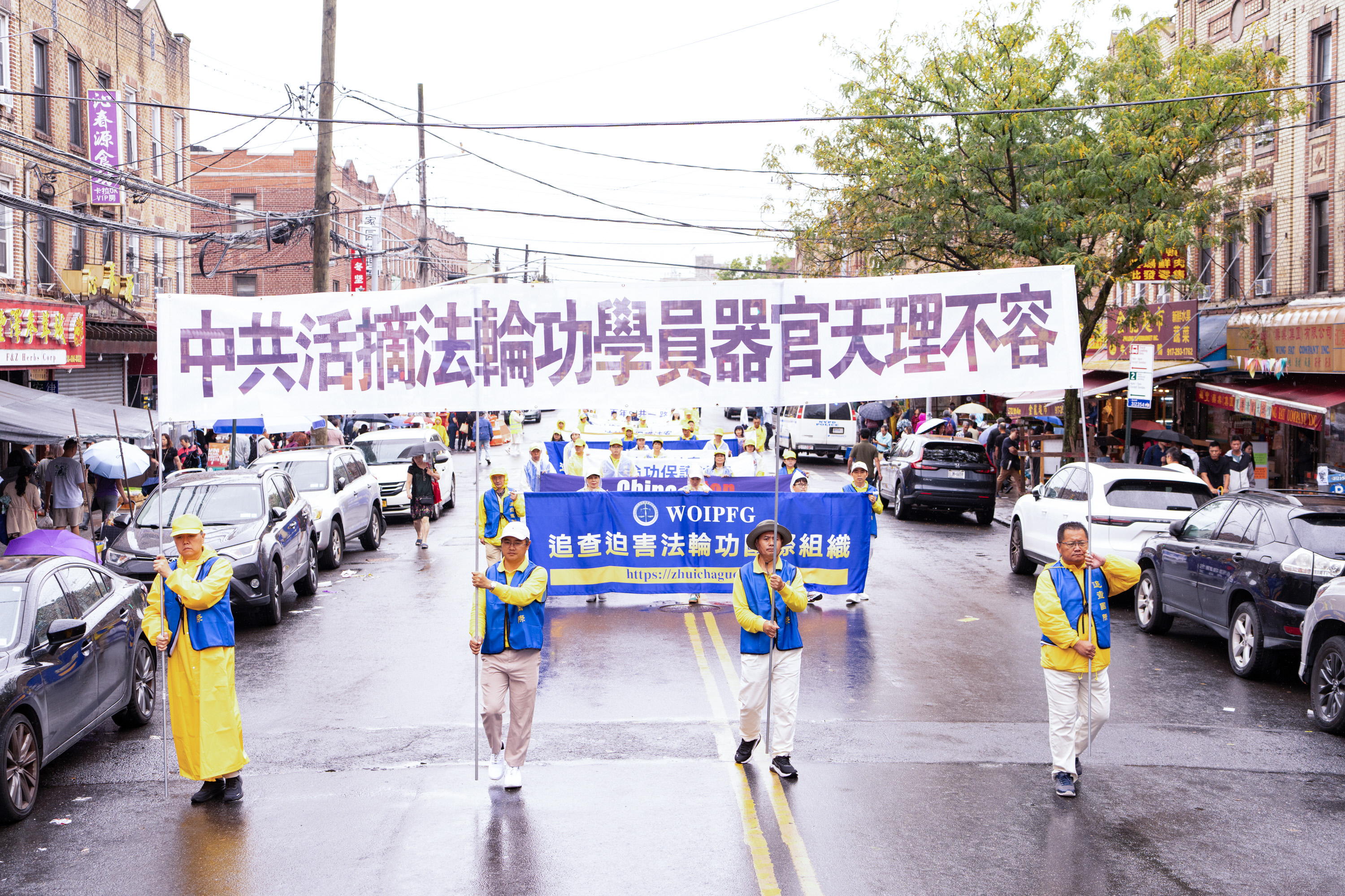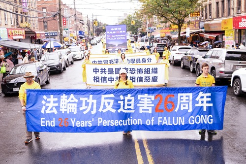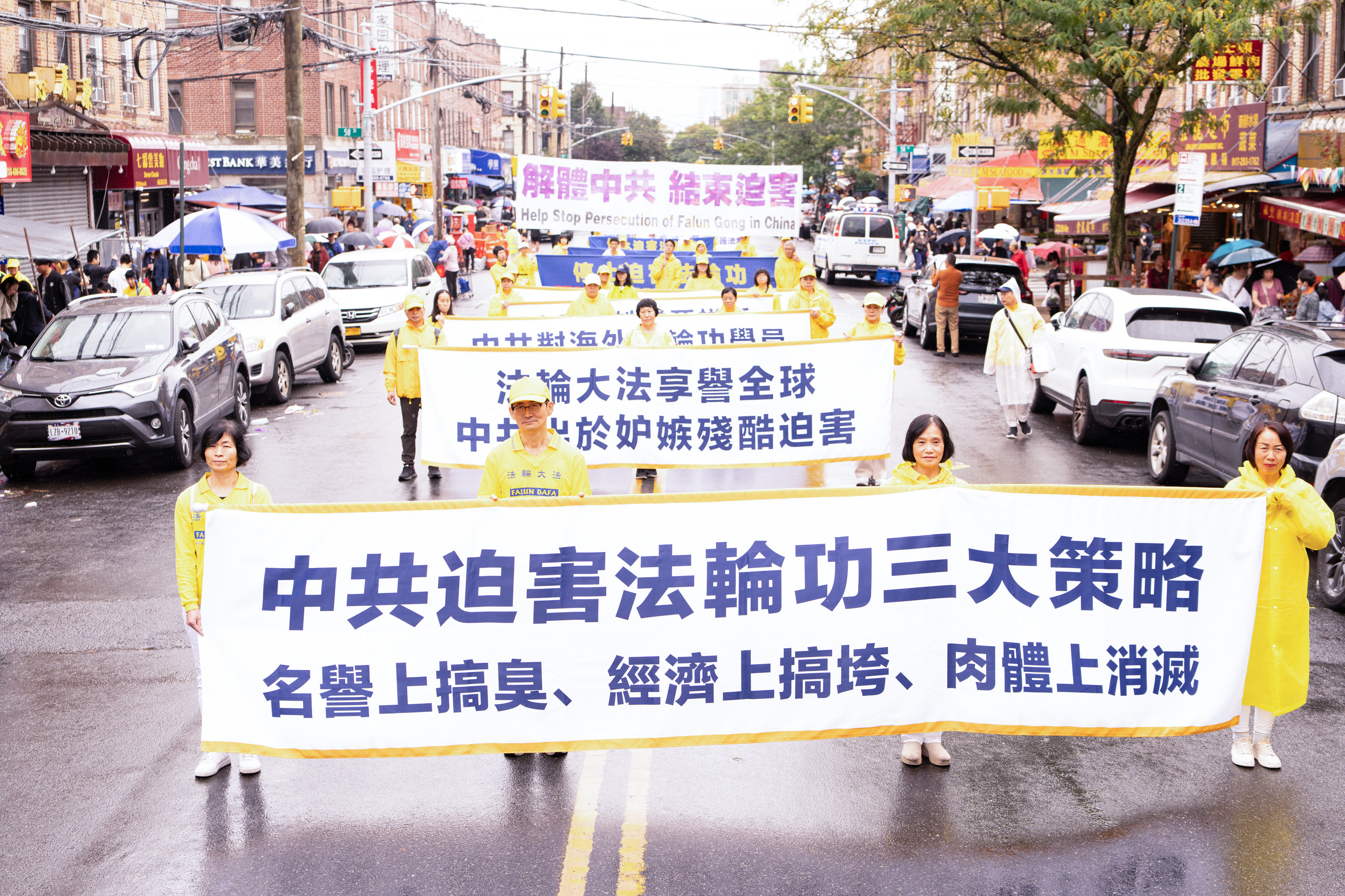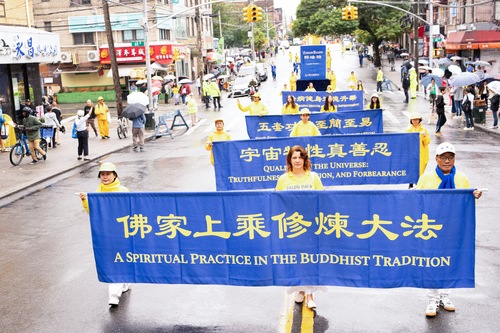 Парад практикующих Фалунь Дафа, состоящий из трёх тематических частей и 26 групп начался от 66 улицы, прошёл по Восьмой авеню, где находится одна из крупнейших китайских общин Нью-Йорка и продолжил своё шествие до 42 улицы. Многие люди останавливались, чтобы посмотреть впечатляющее шествие и сделать фотографии или видео на мобильные телефоны. Чтобы поддержать практикующих Фалуньгун, некоторые китайцы, держа в руках самодельные плакаты, присоединялись к параду.