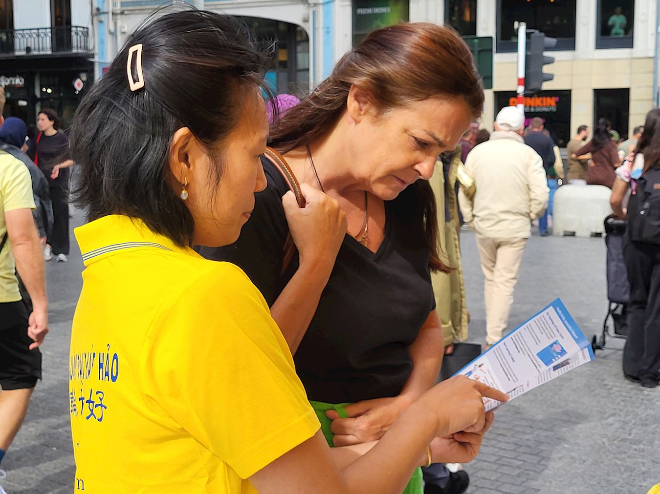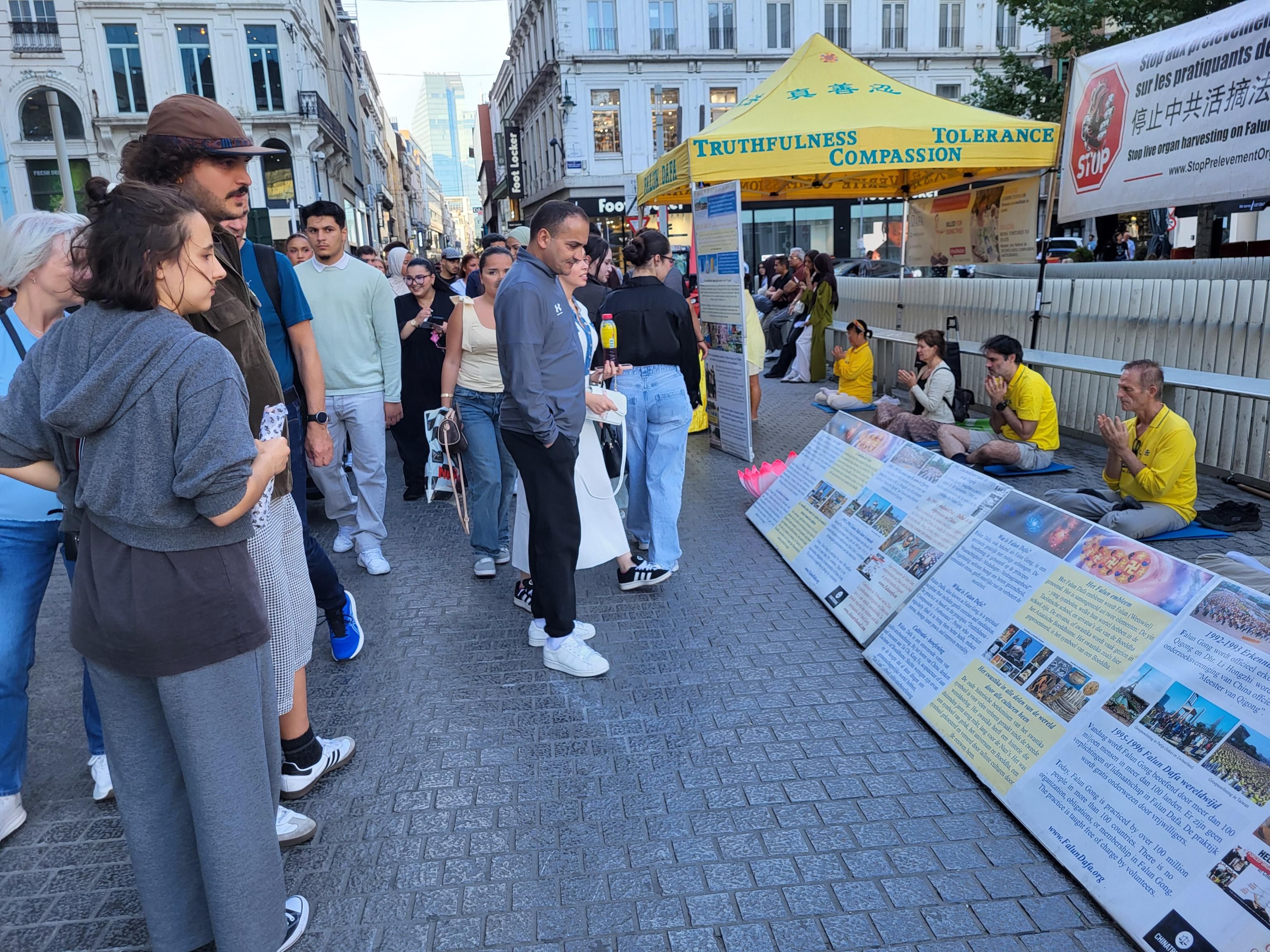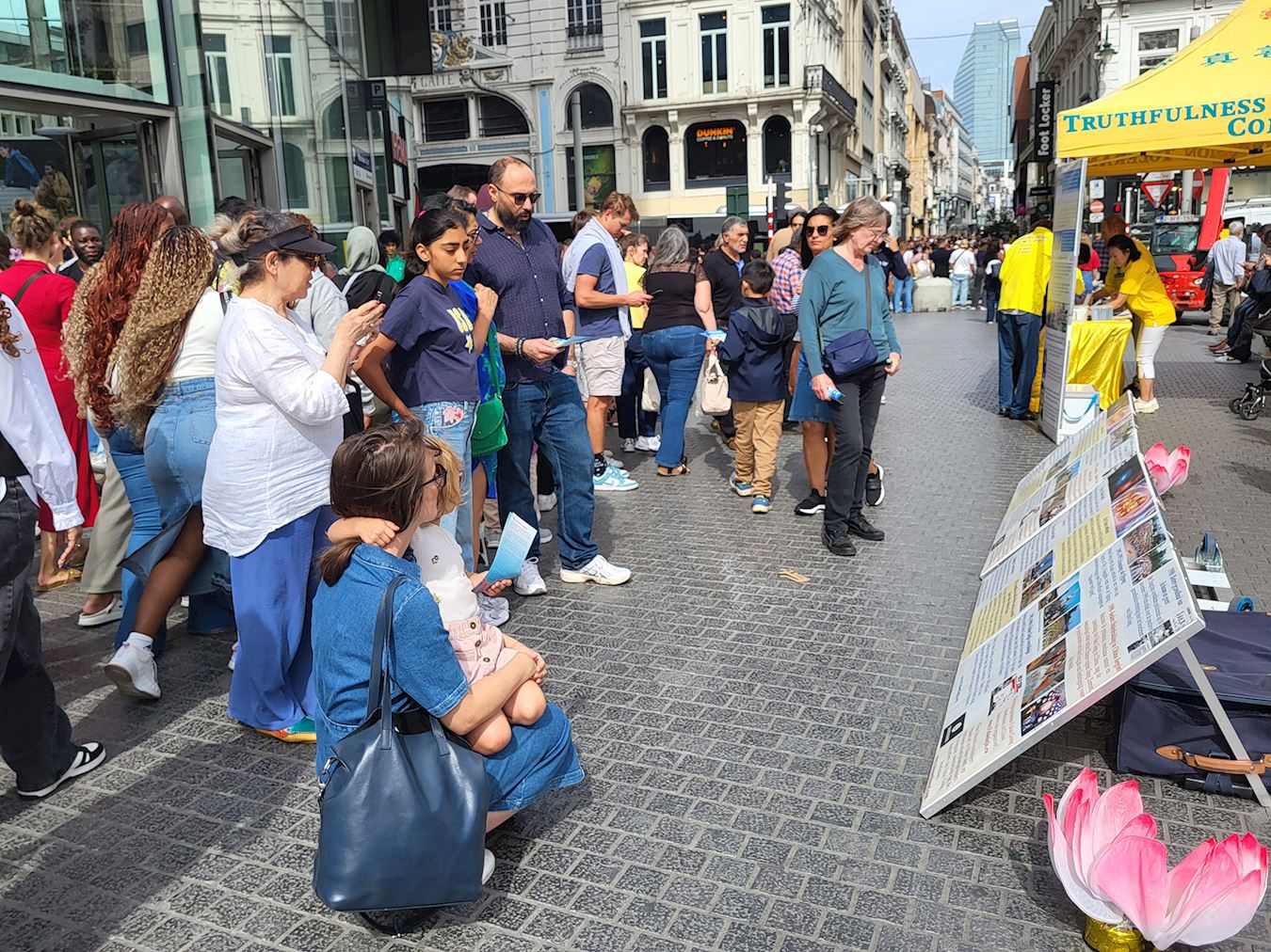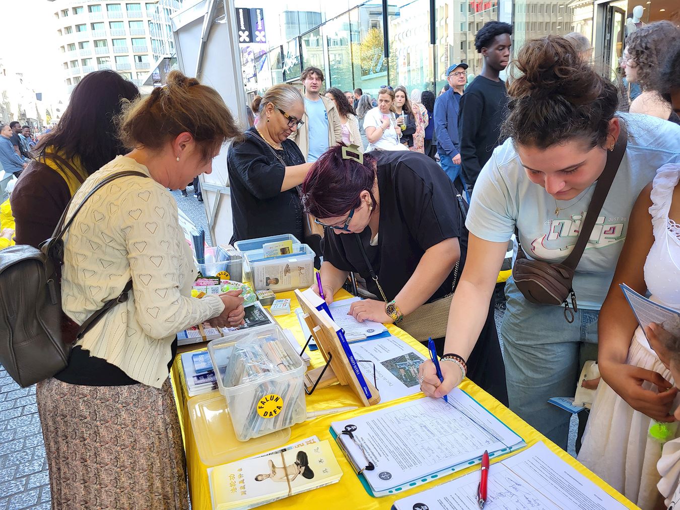 (Minghui.org) Во время мероприятия в Брюсселе 8 сентября 2025 года практикующие рассказывали людям о преследовании Фалунь Дафа коммунистическими властями Китая и санкционированном государством насильственном извлечении органов. Многие прохожие останавливались, чтобы прочитать информацию на стендах и подписать петицию с требованием прекратить нарушения прав человека.