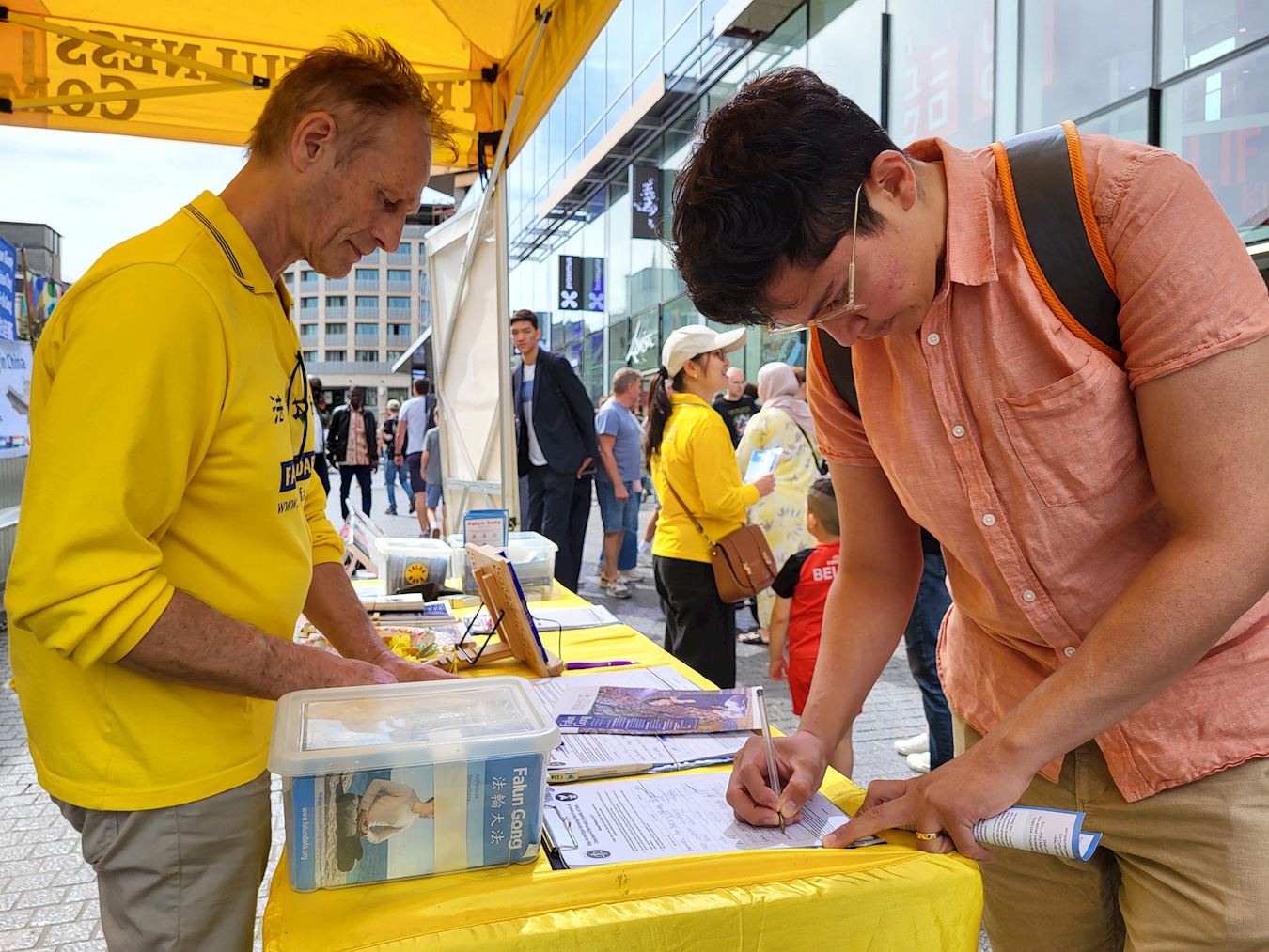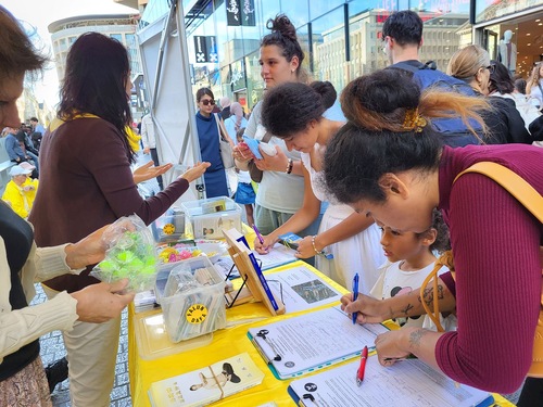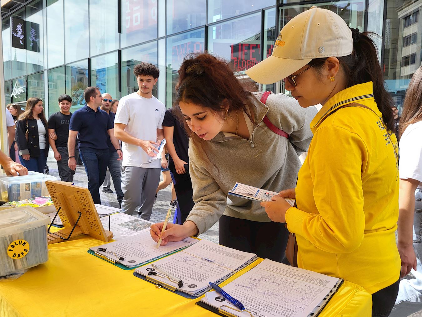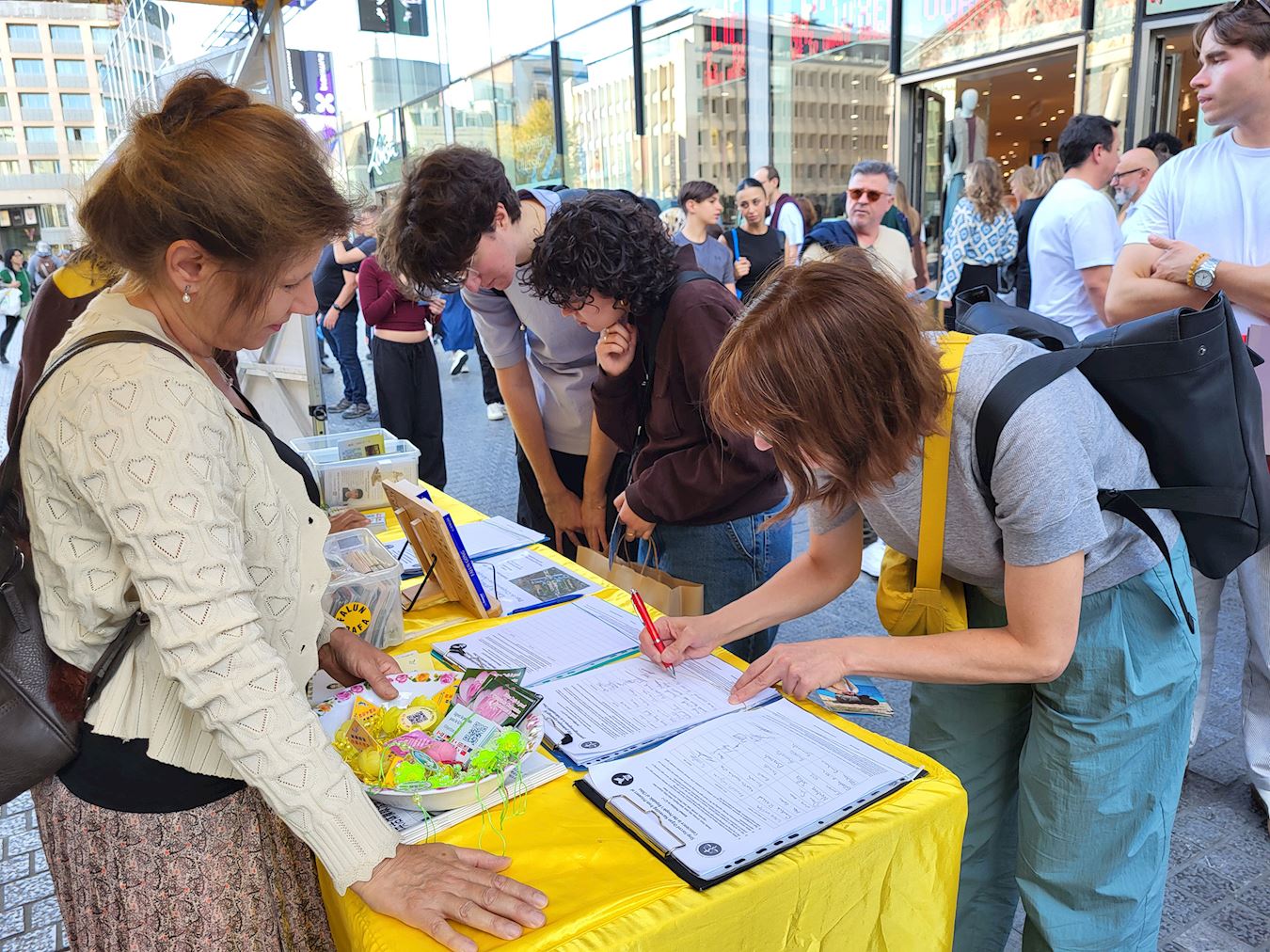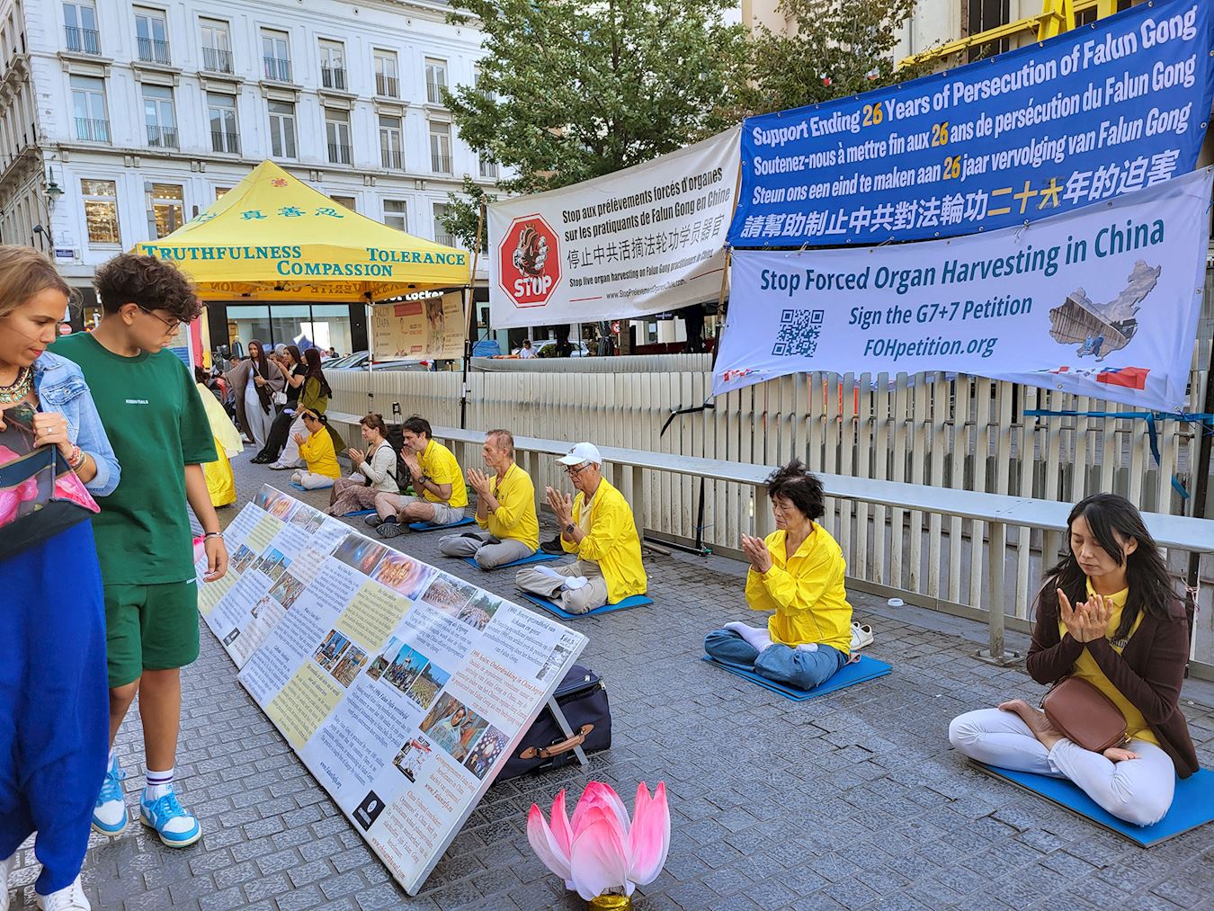 (Minghui.org) Во время мероприятия в Брюсселе 8 сентября 2025 года практикующие рассказывали людям о преследовании Фалунь Дафа коммунистическими властями Китая и санкционированном государством насильственном извлечении органов. Многие прохожие останавливались, чтобы прочитать информацию на стендах и подписать петицию с требованием прекратить нарушения прав человека.