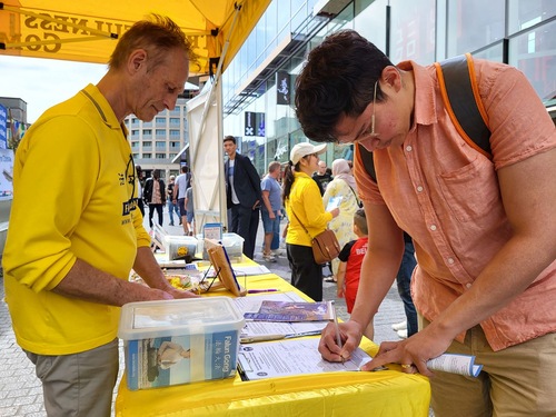 Джанкарло Асторг, стоматолог из Швеции, ныне проживающий в Брюсселе, подписал петицию и сказал: «Я знаю об этом с 15 лет, а сейчас мне 34». Он добавил: «Я услышал о преследовании Фалунь Дафа в Китае, когда ещё учился в Швеции, там я узнал о насильственном извлечении органов, которое является настоящим злодеянием. Мы должны принять все меры против этого преступления».
