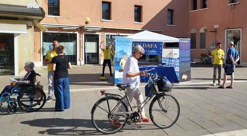 (Minghui.org) Практикующие Дафа из северной и центральной Италии с конца августа по начало сентября провели много мероприятий, чтобы познакомить людей с Фалунь Дафа и разоблачить преследование последователей этой практики совершенствования души и тела компартией Китая (КПК).