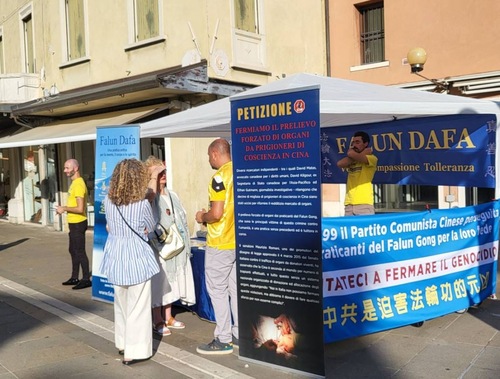 6 сентября практикующие представляли Фалунь Дафа на площади Эдмондо Маттера в центре Местре, пригорода Венеции.