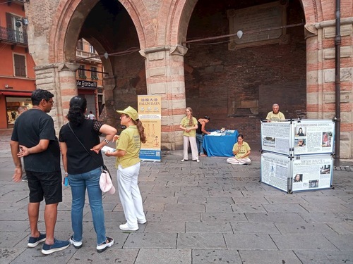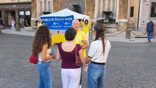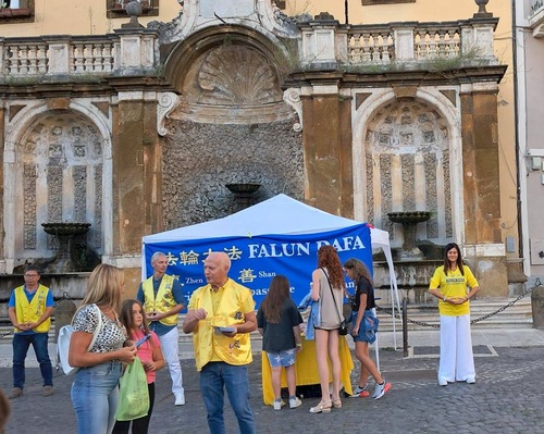 30 августа практикующие Фалунь Дафа провели мероприятие во Фраскати, городе, расположенном к юго-востоку от Рима. Этот исторический район является центром искусств и с древних времён пользуется популярностью у туристов и жителей Рима.