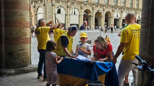Практикующие Фалунь Дафа проводят мероприятие в Болонье, 27 августа 2025 года