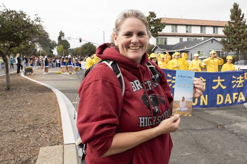 Ванесса работает в поликлинике Sutter. Она сказала: «Моя любимая группа на параде – это Фалуньгун, потому что они (практикующие) очень спокойные, и наблюдая за ними, я чувствую, как моё напряжённое тело расслабляется. Они несут людям позитивную энергию, поднимающую настроение. “Истина, Доброта, Терпение” – прекрасные принципы, и мы должны жить, соответствуя им. Я рада видеть практикующих на параде. Они великолепны!»