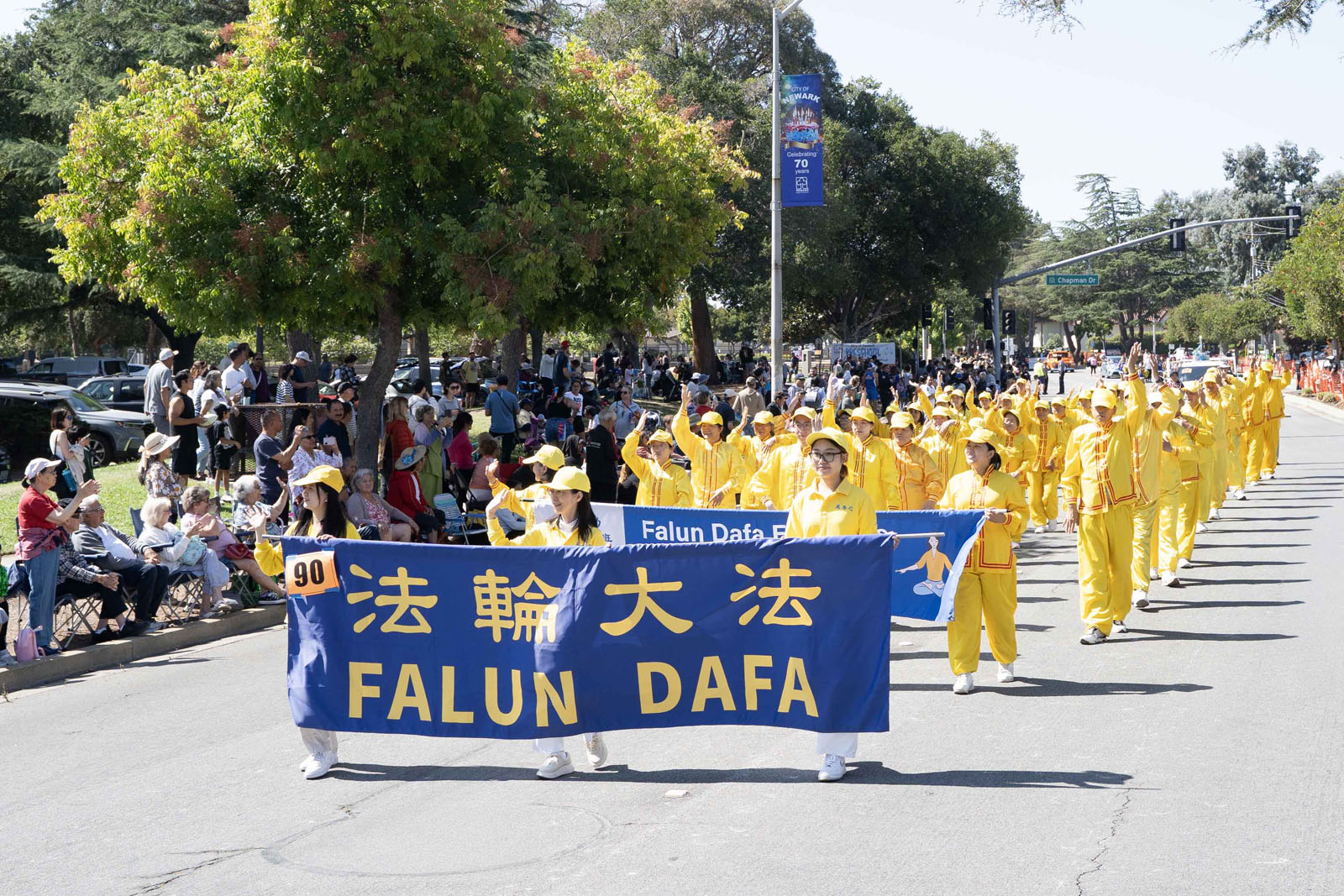 (Minghui.org) Практикующие Фалуньгун приняли участие в 70-м ежегодном параде в честь годовщины города Ньюарка, который прошёл 20 сентября 2025 года в городе Ньюарке в штате Калифорния (США). Их очень тепло встретили зрители, а мэр лично поблагодарил за участие. Многие с восторгом отзывались о Фалуньгун и говорили, что хотели бы обучиться выполнению упражнений.