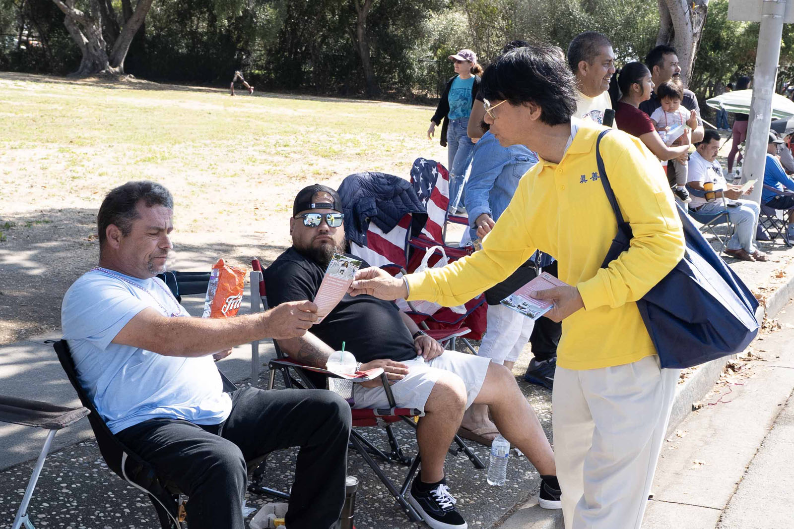 Практикующие раздавали информационные материалы о Фалуньгун