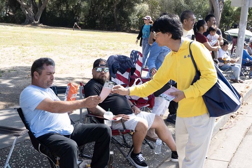 На параде одна группа практикующих Фалуньгун несла большие плакаты, а другая, в жёлтых традиционных костюмах, демонстрировала упражнения. Многие зрители повторяли движения практикующих. После парада люди подходили, чтобы больше узнать о Фалуньгун, и некоторые из них спрашивали, где можно обучиться упражнениям.