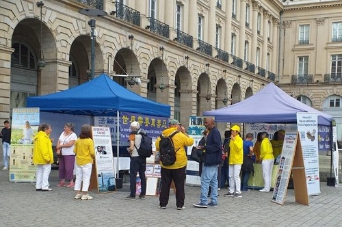 (Minghui.org) 20 сентября 2025 года практикующие Фалунь Дафа провели мероприятие на площади Республики в Ренне, столице Бретани. Они представляли практику совершенствования сознания и тела Фалунь Дафа (или Фалуньгун), демонстрировали упражнения и информировали прохожих о преследование последователей Фалунь Дафа компартией Китая (КПК) и распространении репрессий в другие страны.