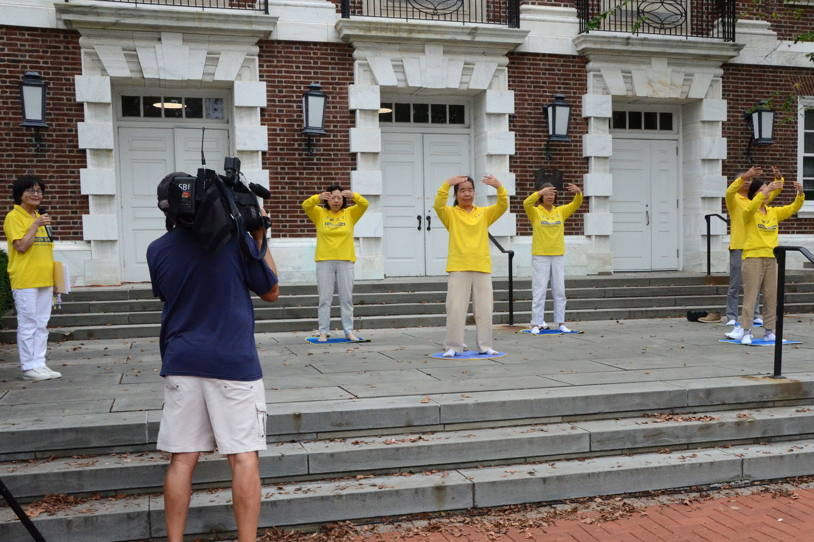 Туристы изучают упражнения Фалуньгун в День сообщества Ньюарка