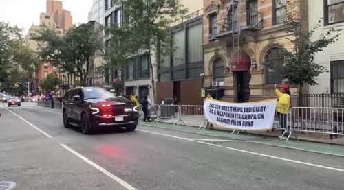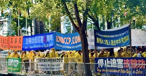 Последователи Фалуньгун также держали плакаты на углу 2-й авеню и 52-й улицы на Манхэттене, как часть их усилий по информированию общественности о преследовании. Они рассказали, что когда мимо проезжал кортеж президента Трампа, находящиеся в автомобилях увидели их плакаты с надписями: «Фалунь Дафа несёт добро» и «Коммунизм – это демоническая идеология, стремящаяся уничтожить человечество». Они также видели, как президент Трамп улыбался и приветственно махал рукой практикующим Фалуньгун, которые помахали ему в ответ.