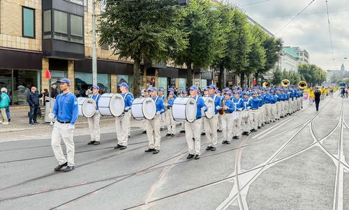 Практикующие представили несколько выступлений на площади Густава Адольфа и провели праздничный парад. Духовой марширующий оркестр Тянь Го и команда барабанщиков с поясными барабанами выступили с яркими номерами. Практикующие также исполнили танец льва. Одна группа практикующих была одета в традиционную китайскую национальную одежду, а другая демонстрировала упражнения Фалунь Дафа. Прохожие останавливались и с интересом смотрели; многие говорили, что выступления произвели на них большое впечатление.