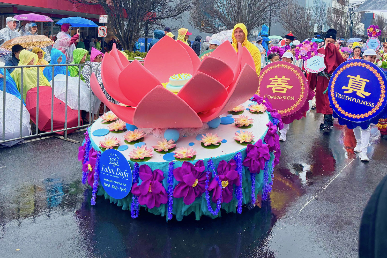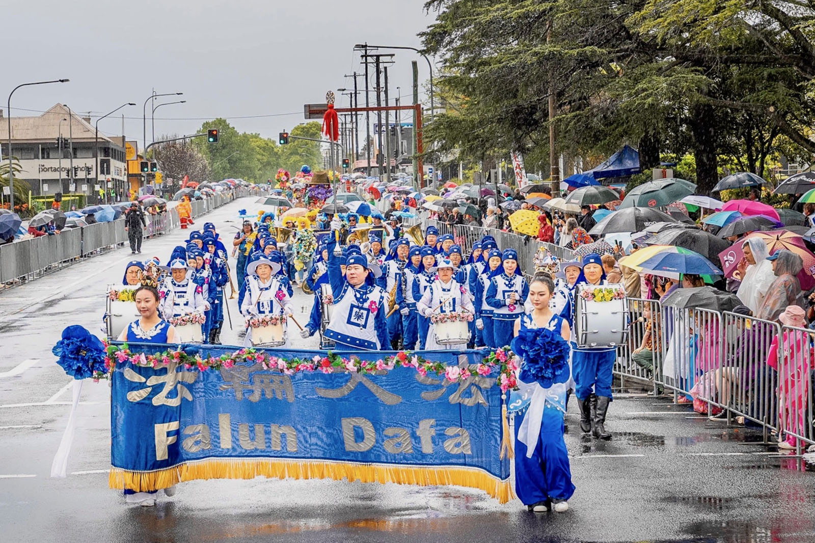 (Minghui.org) Практикующие Фалунь Дафа по приглашению организаторов приняли участие в большом цветочном параде в городе Тувумбе в штате Квинсленд (Австралия) 20 сентября 2025 года. Несмотря на мелкий моросящий дождь, восемьдесят тысяч зрителей вышли на улицы города, чтобы понаблюдать за крупнейшим цветочным парадом, который по праву считается самым продолжительным парадом в Южном полушарии. Темой парада был «Цветочный восторг», и практикующие Фалунь Дафа заняли второе место в своей категории.