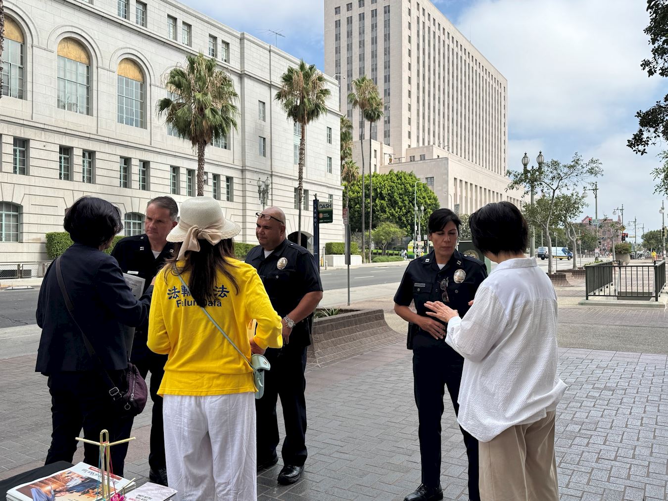 Фрэнсис Лю, практикующая Фалуньгун, участвовавшая в организации этого мероприятия, сказала: «Мы выражаем мирный протест перед мэрией Лос-Анджелеса, потому что компартия Китая усилила преследование Фалуньгун и распространила его на Соединённые Штаты. КПК эксплуатирует американскую судебную систему и СМИ, пользуясь изъянами в американской демократии».