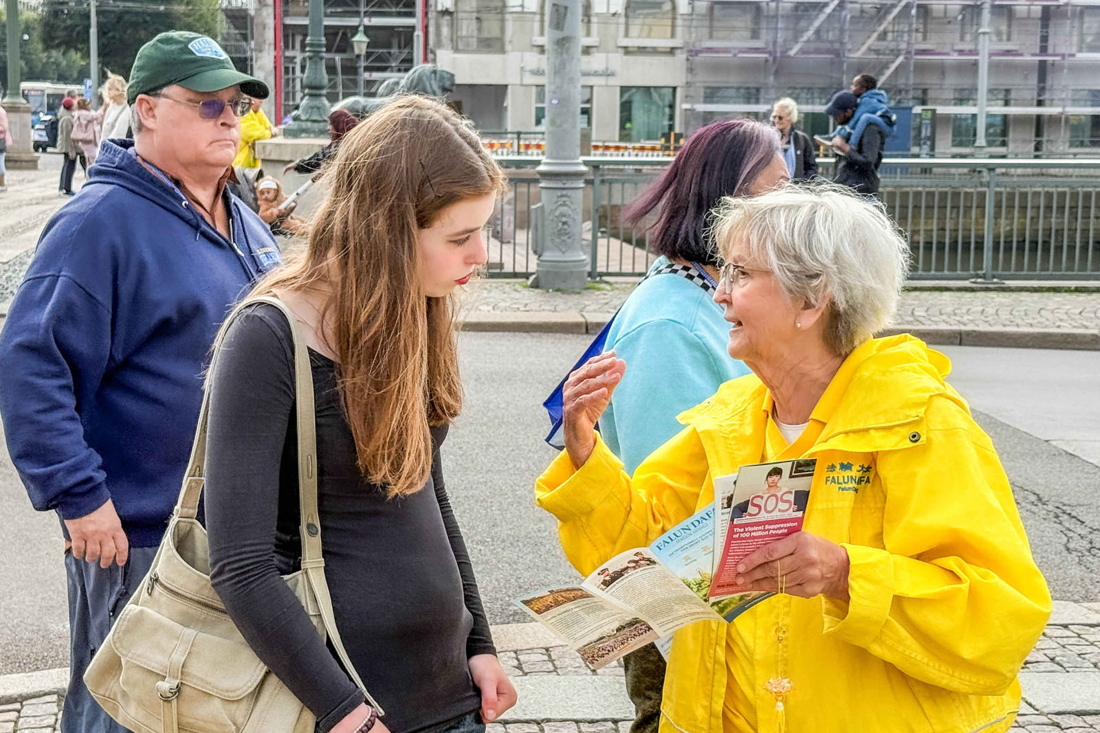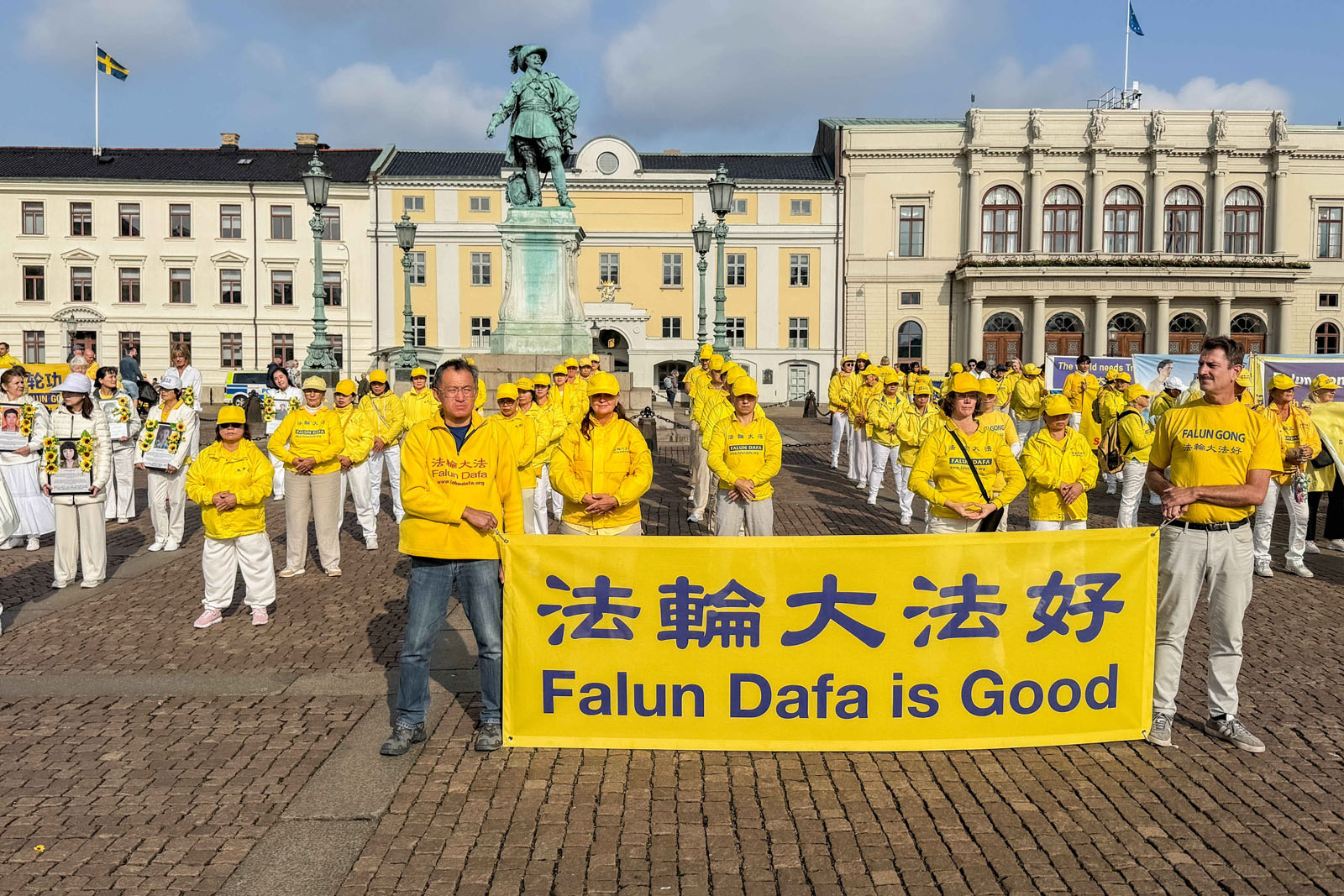 (Minghui.org) 20 сентября 2025 года практикующие Фалунь Дафа провели митинг на площади Густава Адольфа в центре Гётеборга (Швеция), чтобы отметить 30-летие распространения Фалунь Дафа в Швеции и Европе и привлечь внимание общественности к преследованию этой практики совершенствования сознания и тела компартией Китая (КПК), продолжающемуся уже 26 лет.