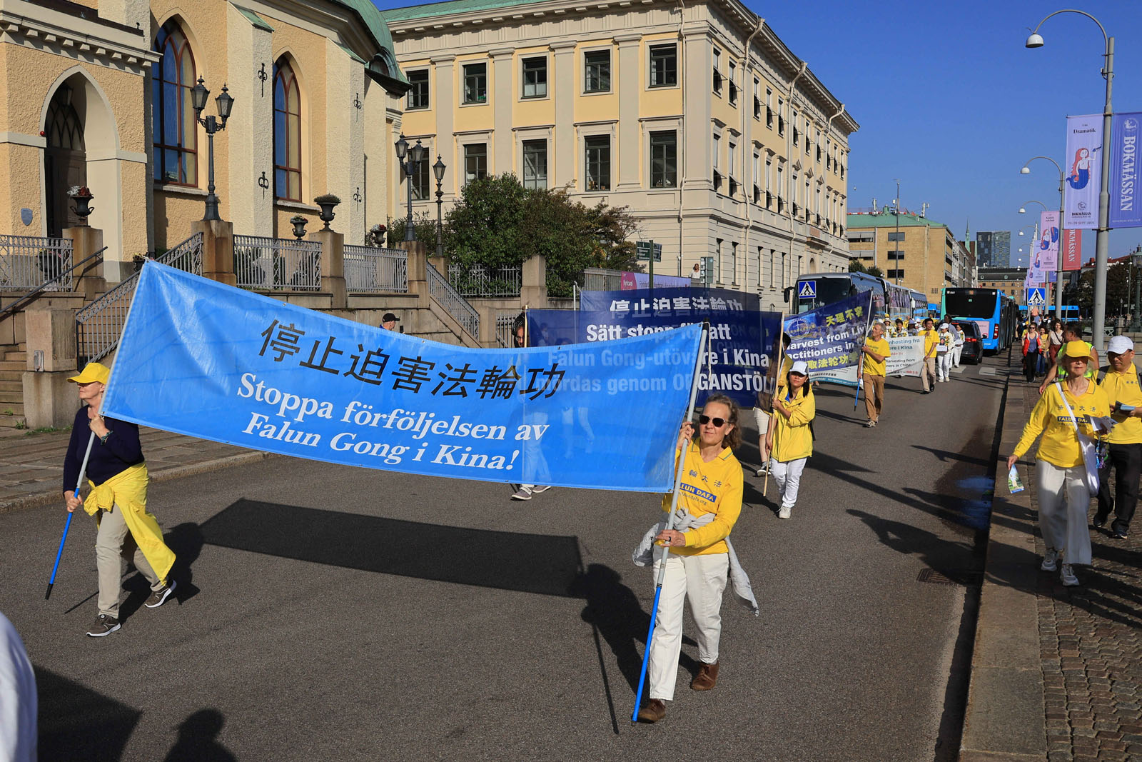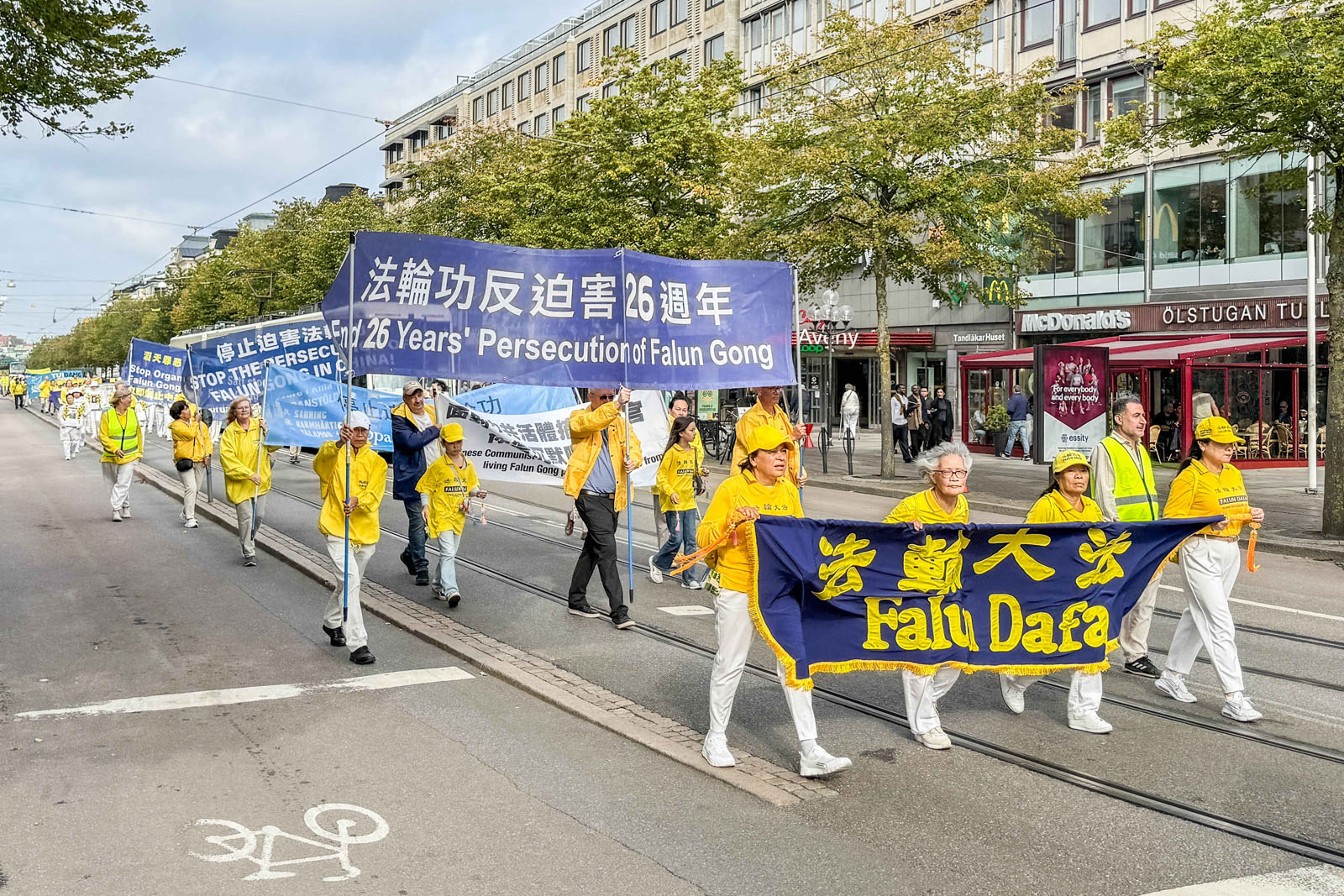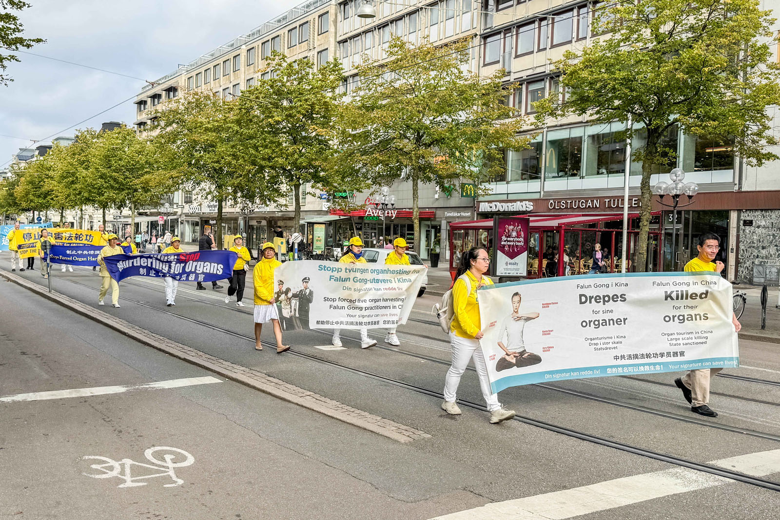 Практикующие Фалунь Дафа проходят парадом по центральным улицам Гётеборга