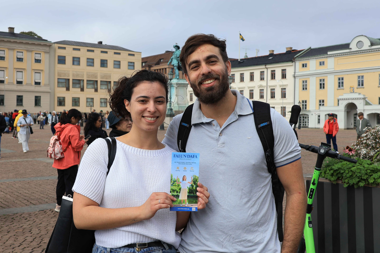 После митинга практикующие прошли парадом по центральным улицам Гётеборга. Лиза, инженер, и Даниэль, юрист из Бразилии, три недели назад начавшие новую жизнь в Швеции, наблюдали за парадом.