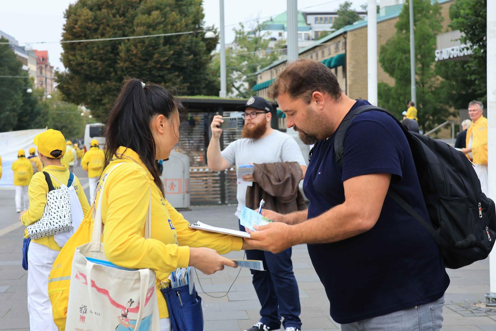 Ганс Ротенберг, бывший член шведского парламента, выступил на митинге, обратив внимание присутствующих на преследование и насильственное извлечение органов, санкционированное КПК. Он давно выступает за прекращение преследования Фалунь Дафа (Фалуньгун) в Китае.