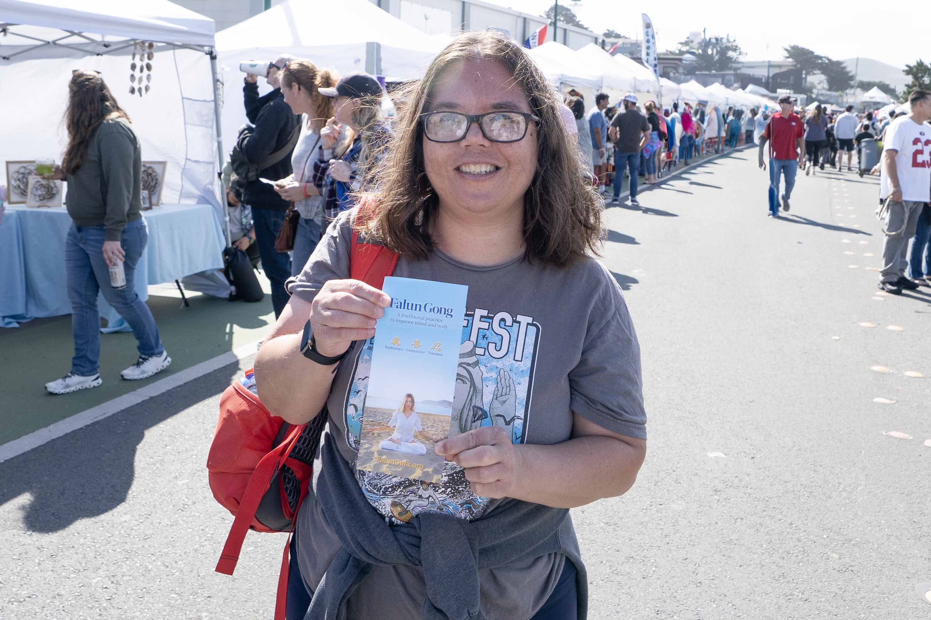 Эми выросла в Пасифике, но некоторое время назад переселилась в восточную часть Области залива Сан-Франциско. Она приехала в родной город, чтобы посмотреть парад, и пришла в восторг, увидев группу Фалуньгун: «Мне очень нравятся практикующие Фалуньгун в праздничном параде. Они вызывают у меня умиротворение».