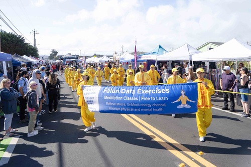 Парад начался субботним утром в 10 часов. Зрители, стоявшие по обе стороны улицы, аплодировали при виде колонны практикующих Фалуньгун. Одни приветствовали взмахами рук и одобрительными возгласами, другие повторяли движения вслед за практикующими, демонстрировавшими упражнения.
