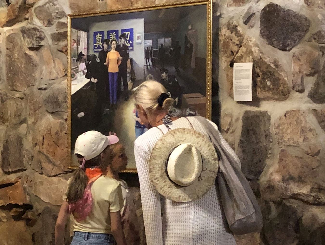 Они внимательно слушали рассказ экскурсовода о том, как практикующие Фалунь Дафа подвергаются преследованию в Китае. Молодые люди проявили интерес к практике и сказали, что многое узнали.