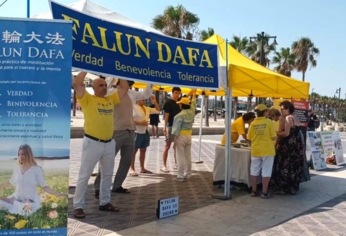 (Minghui.org) 10 августа 2025 года с 11 часов утра до девяти часов вечера практикующие Фалунь Дафа (Фалуньгун) в Испании проводили мероприятие на набережной у пляжа Мальварроса в городе Валенсия.