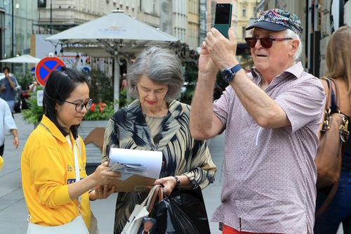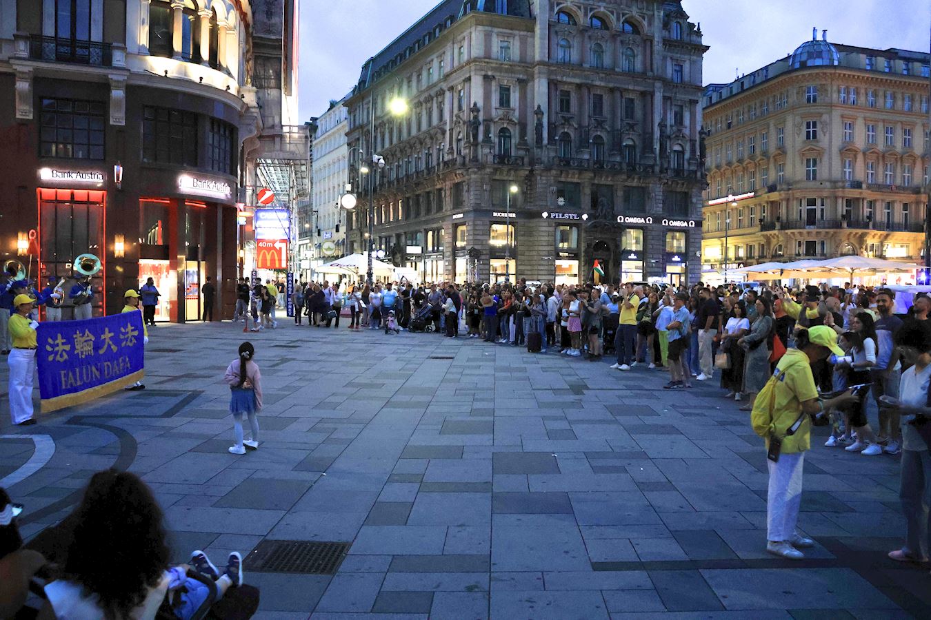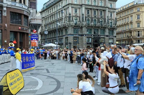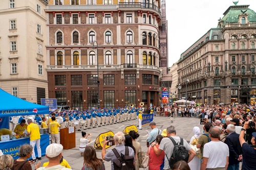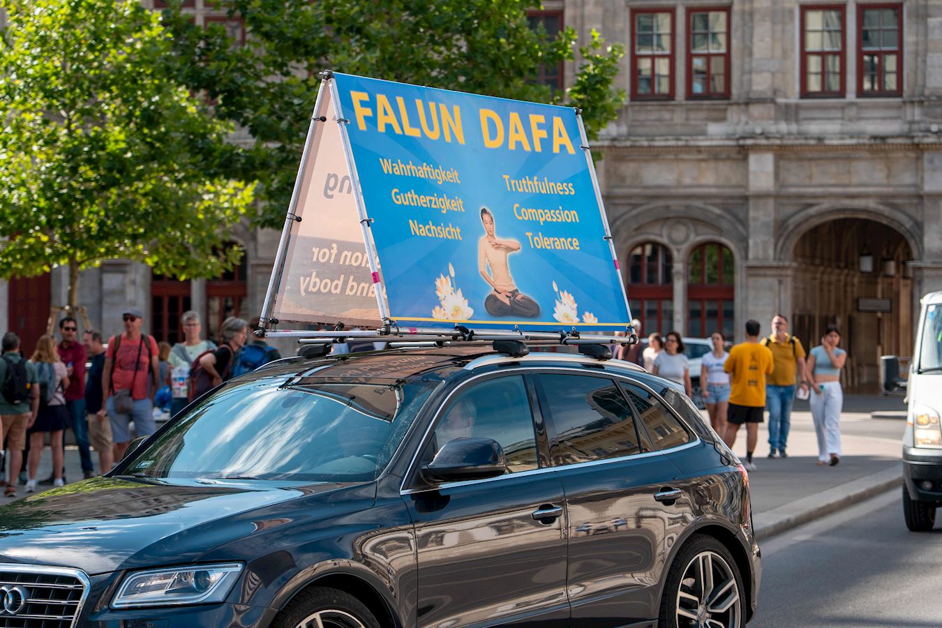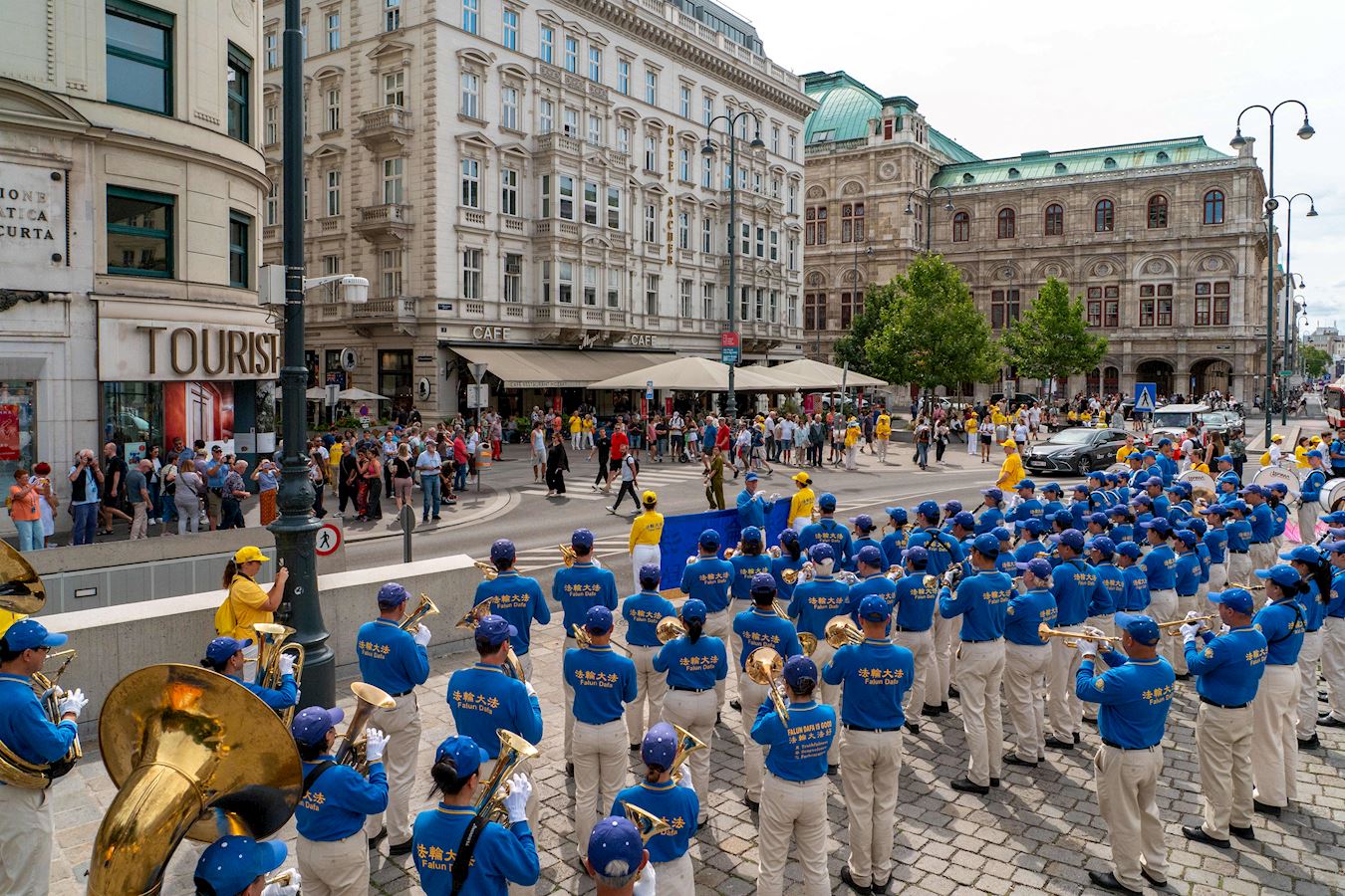 Практикующие также провели парад в центре Вены. Духовой оркестр Тянь Го возглавил парад, а практикующие демонстрировали упражнения и несли плакаты с информацией о Фалунь Дафа. Цель мероприятия заключалась в том, чтобы рассказать людям о Фалунь Дафа и привлечь внимание общественности к продолжающемуся преследованию в Китае.