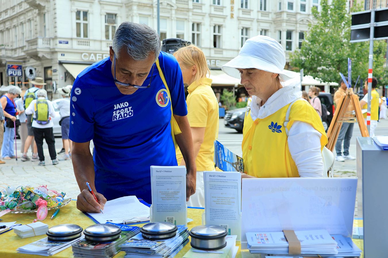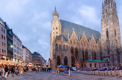 30 августа 2025 года духовой оркестр Тянь Го выступил на площади Гельмут-Цильк-Плац возле Венской государственной оперы. Практикующие разместили плакаты, раздавали информационные буклеты и собирали подписи под петицией.