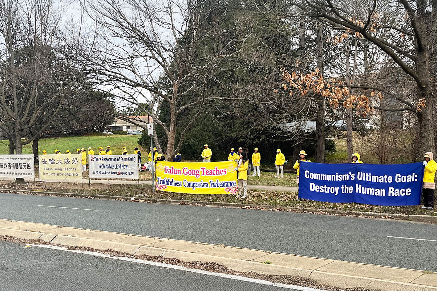 Информирование общественности о преследовании в Китае перед зданием посольства Китая в Канберре 1-3 сентября 2025 года