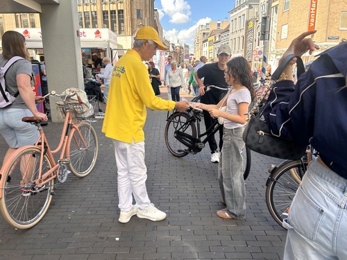 Установив информационные плакаты в торговом центре Дордрехта, практикующие Фалунь Дафа выполняли упражнения, распространяли буклеты и собирали подписи под петицией с призывом к странам «Большой семёрки» (G7+7) помочь остановить преследование последователей Фалунь Дафа компартией Китая (КПК). Узнав о том, что последователи Фалунь Дафа не могут свободно совершенствоваться в Китае из-за жестокого преследования компартией, многие жители Дордрехта подписали петицию. (примечание: страны G7 – это США, Канада, Франция, Германия, Италия, Япония и Великобритания; страны +7 – это Аргентина, Австралия, Индия, Израиль, Мексика, Южная Корея и Тайвань).