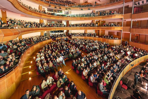 Труппа компании Shen Yun North America в переполненном зале театра Мэри Стюарт Роджер в Центра искусств Галло в городе Модесто (штат Калифорния, США) во второй половине дня 10 января