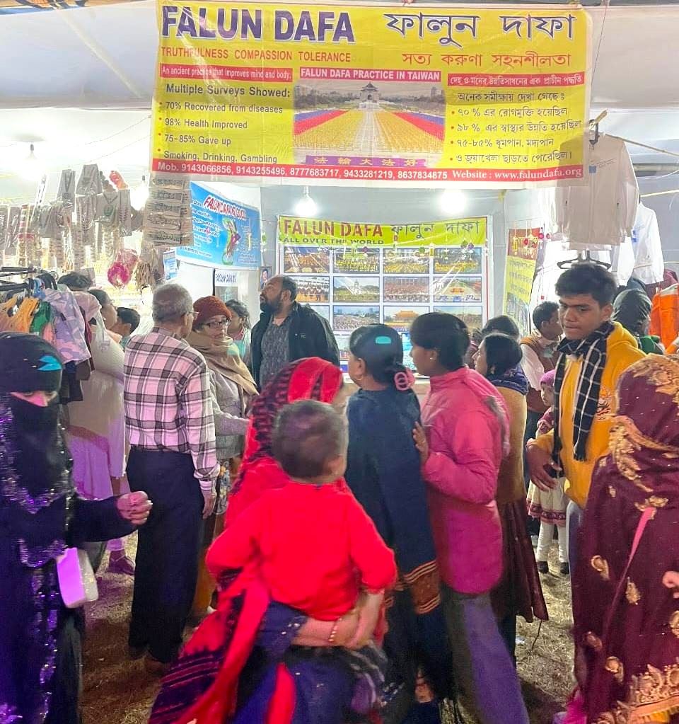 Практикующие Фалунь Дафа из Калькутты проехали 212 километров, чтобы познакомить тысячи людей с Фалунь Дафа. Они хотели поделиться практикой, которая принесла им пользу.