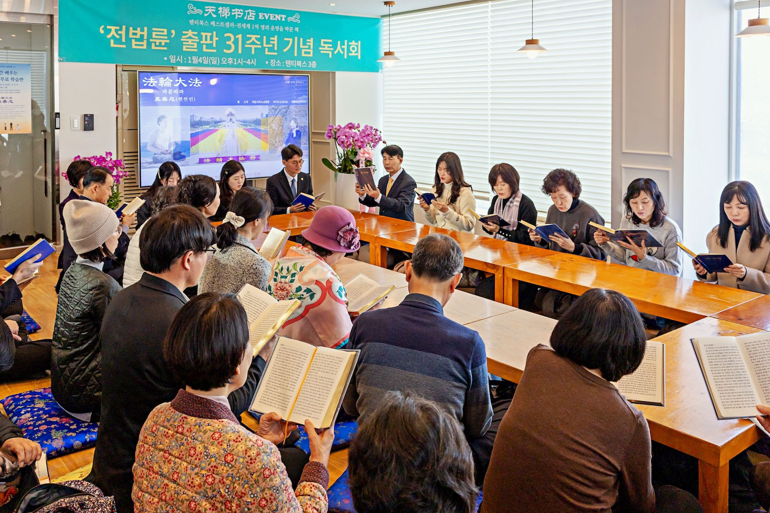 (Minghui.org) Книжный магазин Tianti в Сеуле (Южная Корея) 4 января 2026 года отметил 31-ю годовщину публикации «Чжуань Фалунь», основной Книги Фалунь Дафа. Книга «Чжуань Фалунь» была впервые опубликована в Пекине 4 января 1995 года, а с 2022 года магазин празднует годовщину её издания.