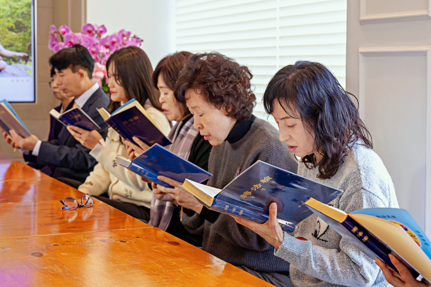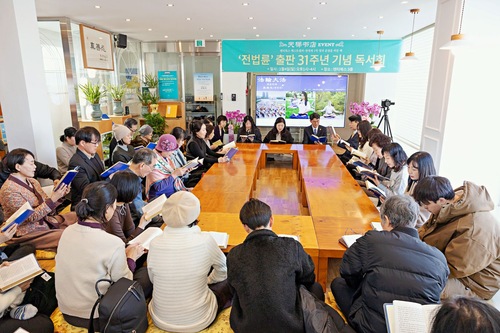 Мероприятие, состоявшееся в районе Йонсан, началось с музыкального выступления. Чжан Шу, менеджер книжного магазина, в приветственной речи сказала: «Я надеюсь, что все услышат о Книге “Чжуань Фалунь”, прочтут её и обретут мудрость». Более 50 человек, присутствовавших на этом праздничном мероприятии, вместе читали Книгу «Чжуань Фалунь» и обменивались опытом совершенствования. Практикующие отмечали, что чтение «Чжуань Фалунь» помогает им сохранять позитивный настрой на работе и в повседневной жизни.