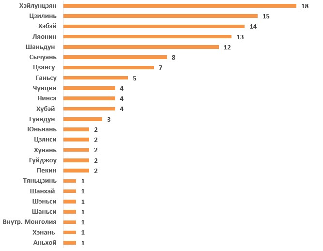На диаграмме: по вертикали – названия провинций; по горизонтали – число случаев смерти