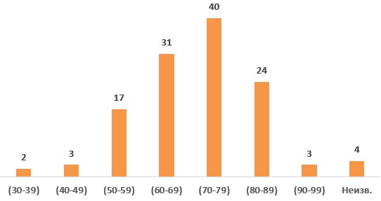На диаграмме: по вертикали – число погибших практикующих Дафа; по горизонтали – возраст